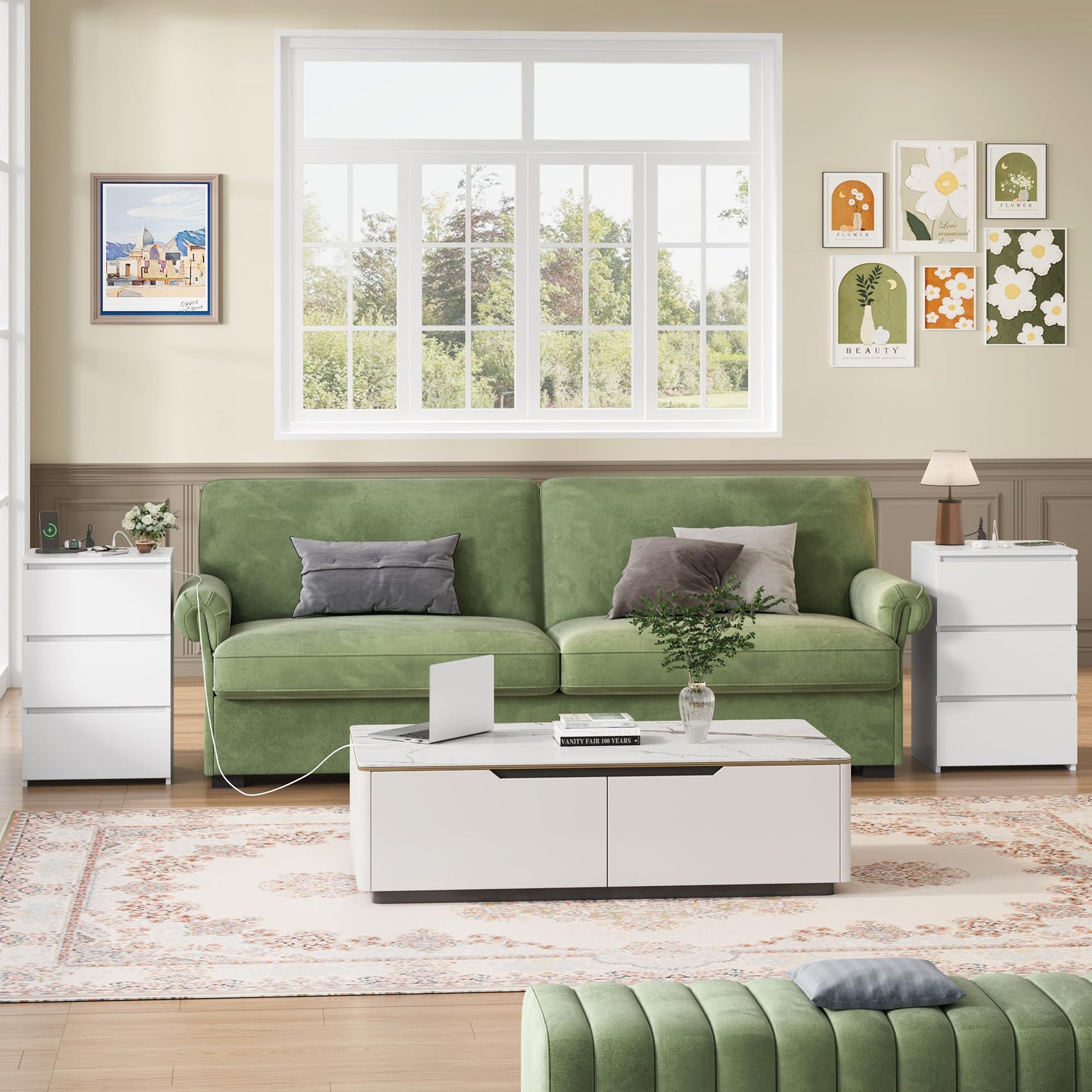 - Simpler but More Practical -- Not sparing every space, the body of the white nightstand is made into a 5.7” deeper three-drawer design, allowing storage space to be maximized. The simple handle-less design is not only neat and beautiful but also prevents clothes from hooking.