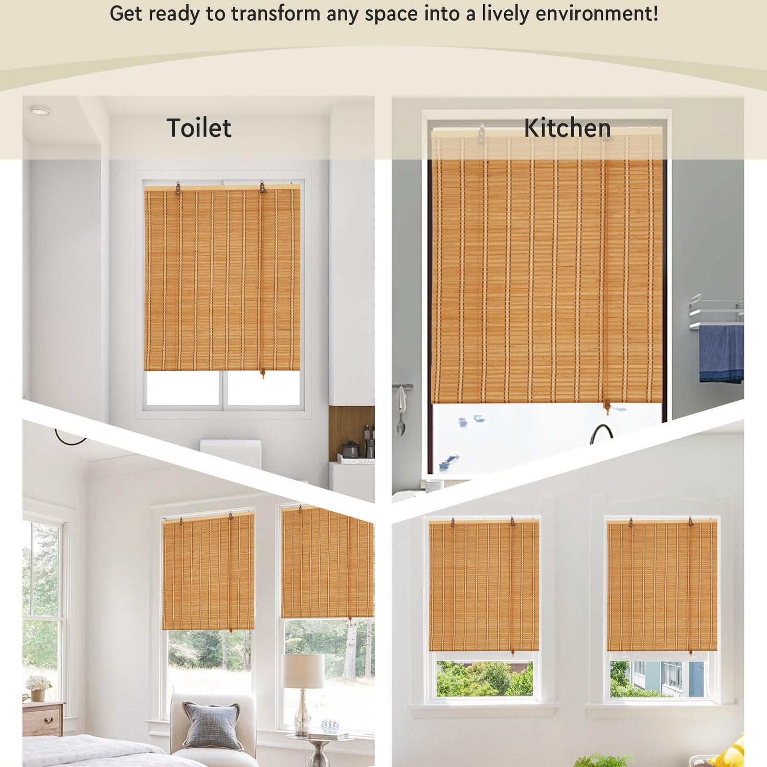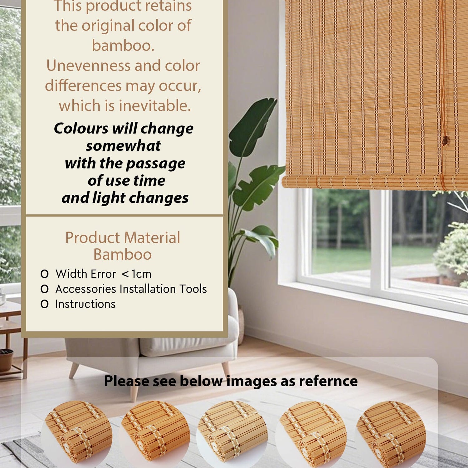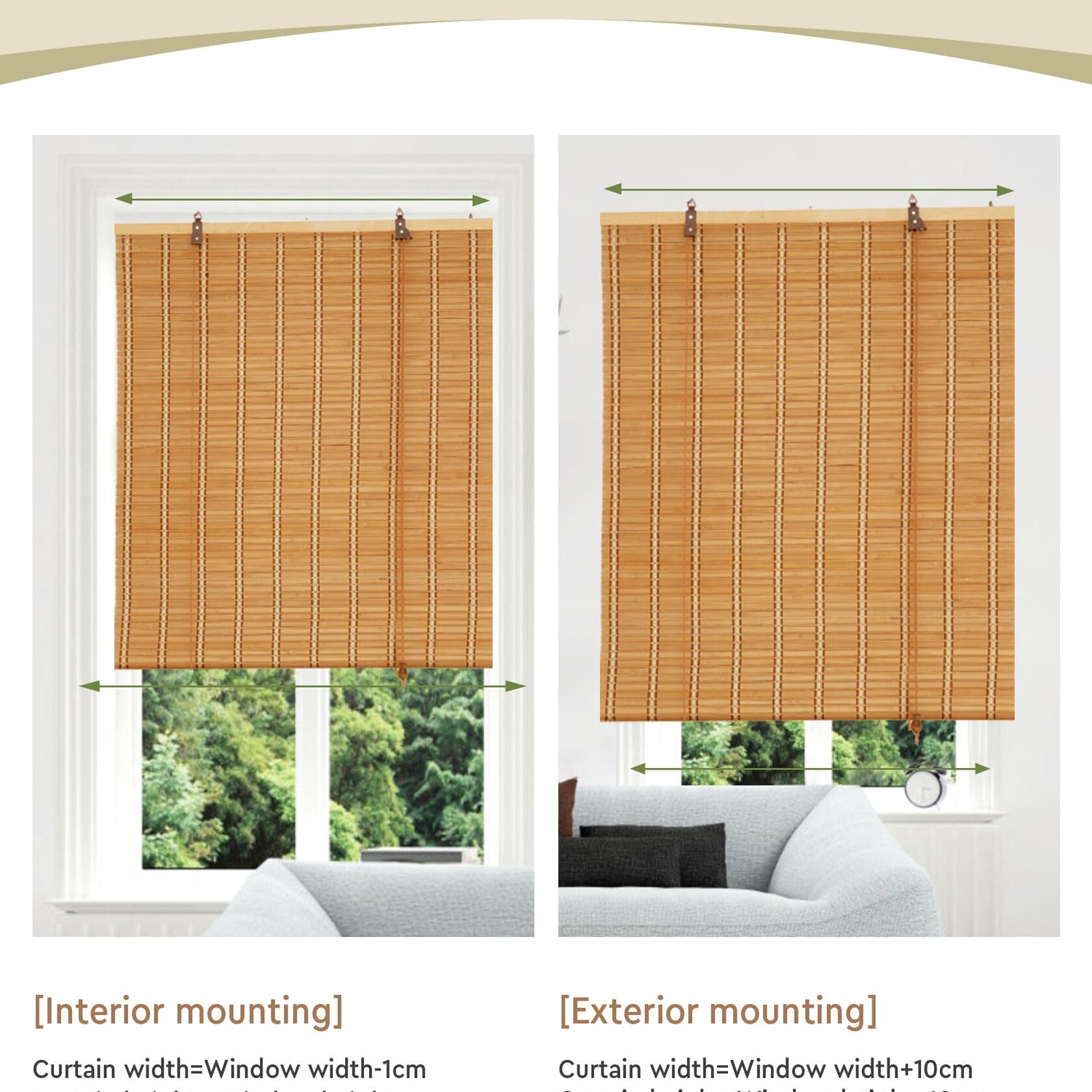 - 【100% pure natural bamboo】Our Bamboo Roller Blinds No chemicals are added, healthy and environmentally friendly, making it more tough. Bring fresh natural breath to the family, breathable, fashionable and elegant. The gaps between the bamboo can filter the light, the light transmittance can reach 60% thus makes the sunlight more mild and acceptable. In the hot summer it can boost air circulation and keep environment cool.