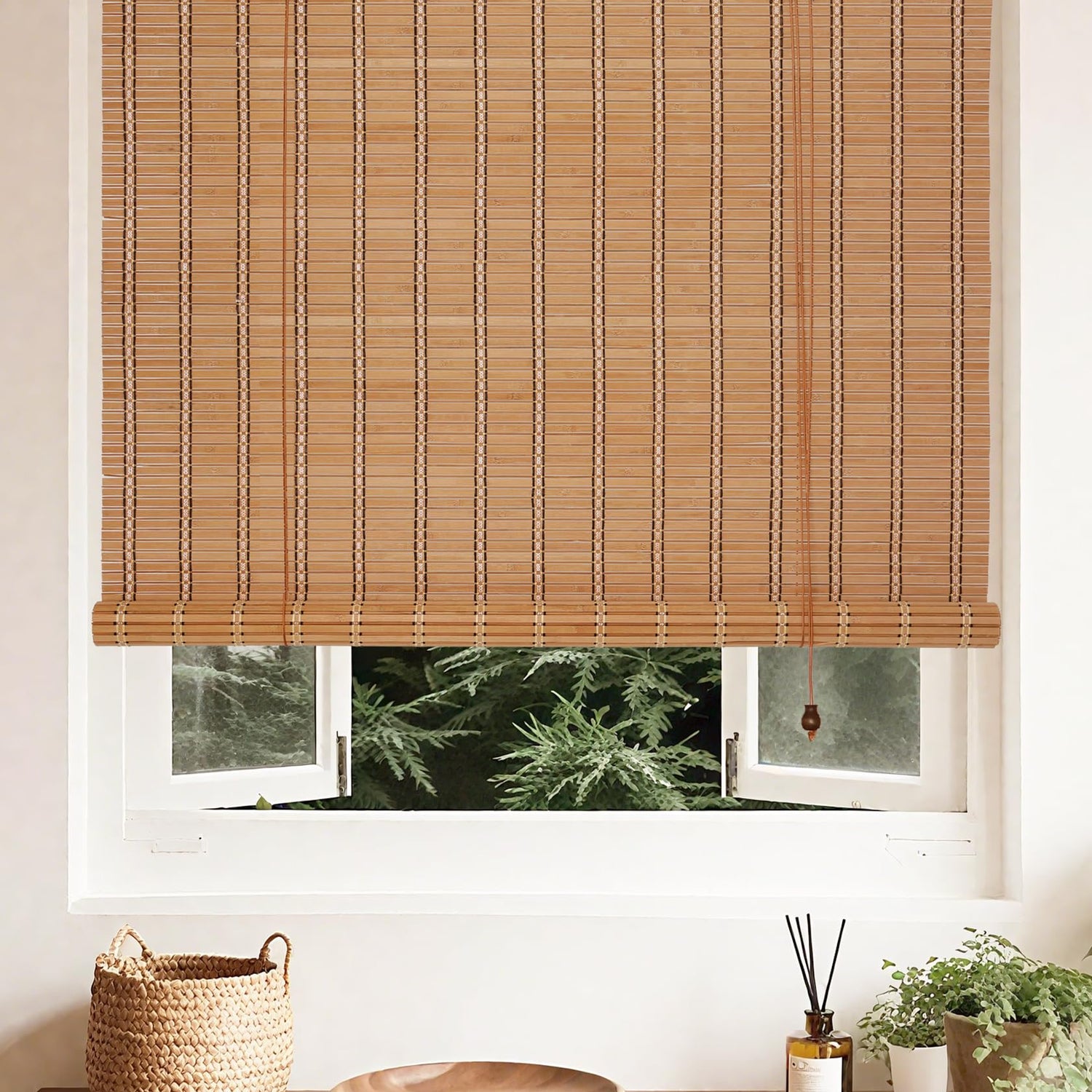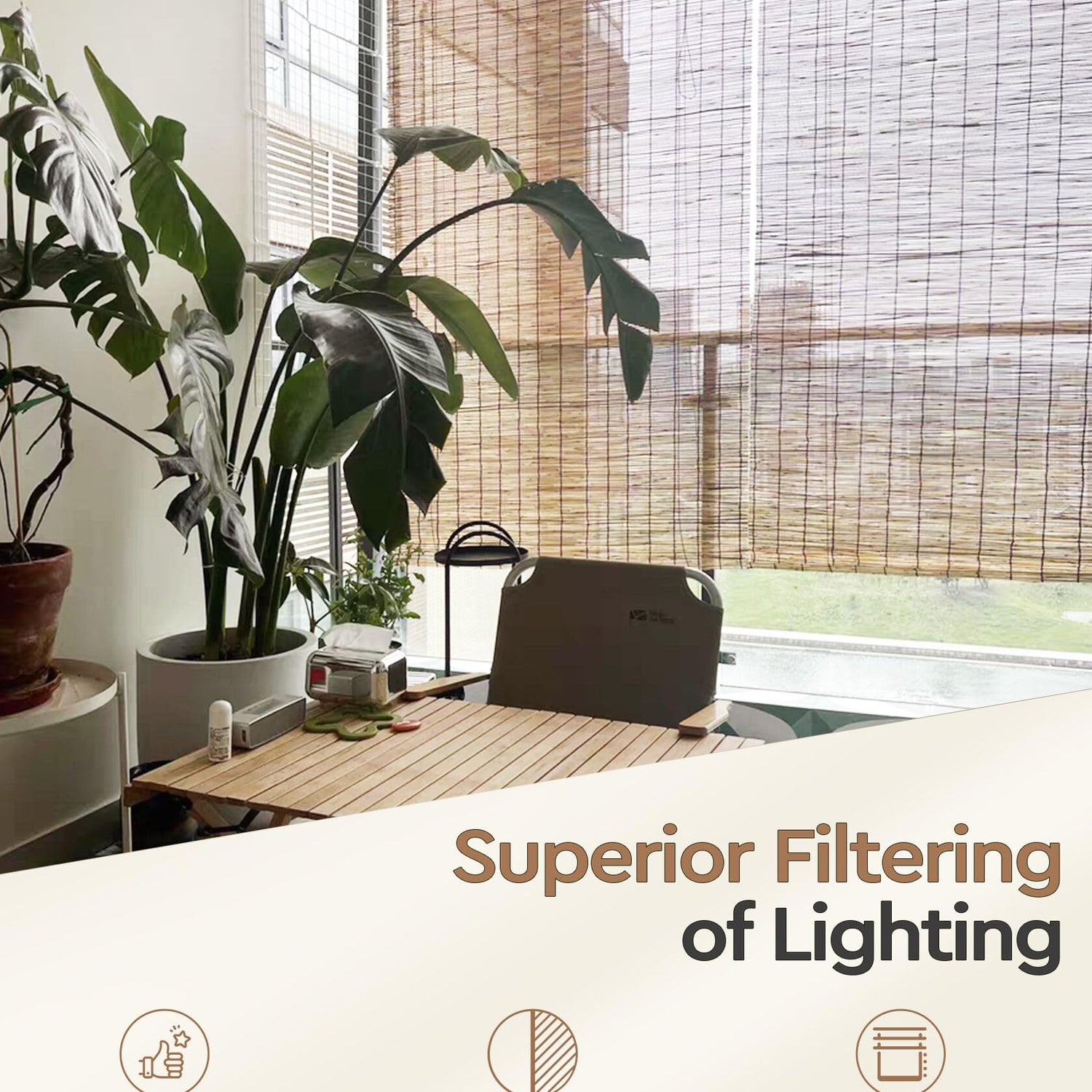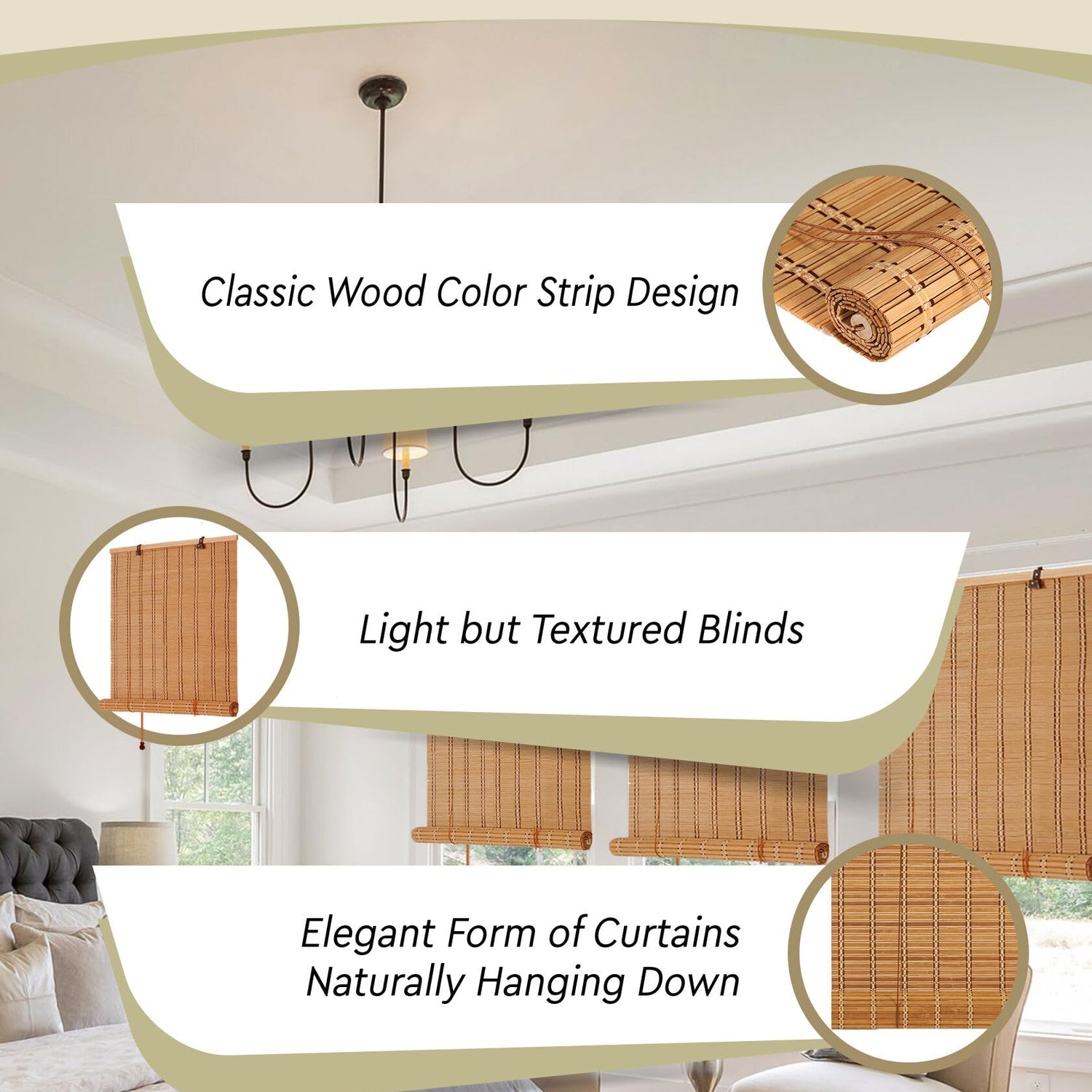 - 【100% pure natural bamboo】Our Bamboo Roller Blinds No chemicals are added, healthy and environmentally friendly, making it more tough. Bring fresh natural breath to the family, breathable, fashionable and elegant. The gaps between the bamboo can filter the light, the light transmittance can reach 60% thus makes the sunlight more mild and acceptable. In the hot summer it can boost air circulation and keep environment cool.