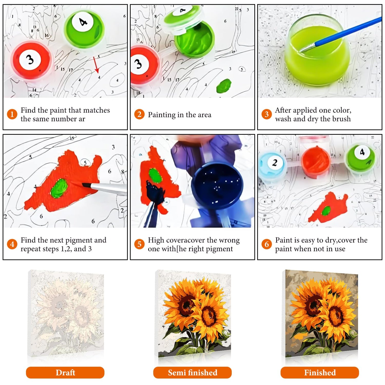 - 【Easy Oil Painting】Different from other paint kit, our adult paint by number kits on canvas framed uses HD color canvas. The number area is easier to distinguish, and paint is easier to adhere to it. Whether you are an experienced painter or inexperienced, you can create amazing artworks that will make you feel like an established painter by following the instructions. You need match the numbers of the paint and the figures on the canvas to fill in the paint.