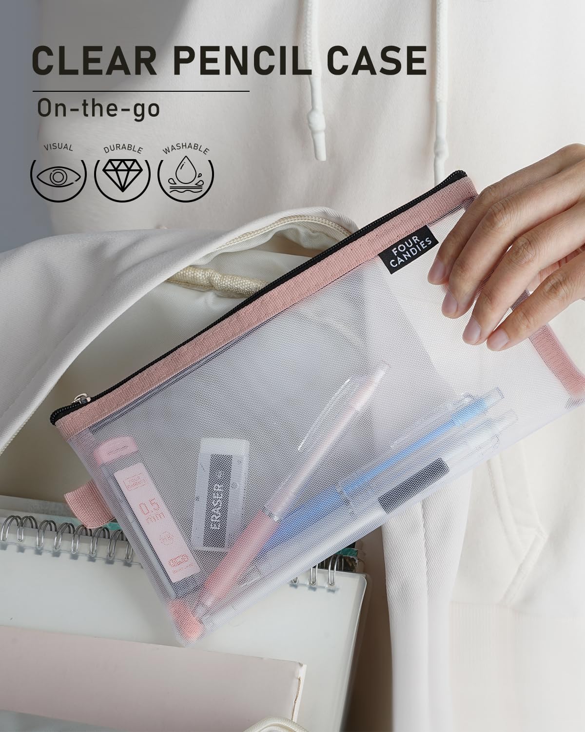 Four Candies Mechanical Pencil Set with Case, 6PCS Aesthetic Mechanical Pencils 0.5 & 0.7mm with 360PCS HB Lead Refills, 3PCS Erasers, 9PCS Eraser Refills for writing, drawing and sketching