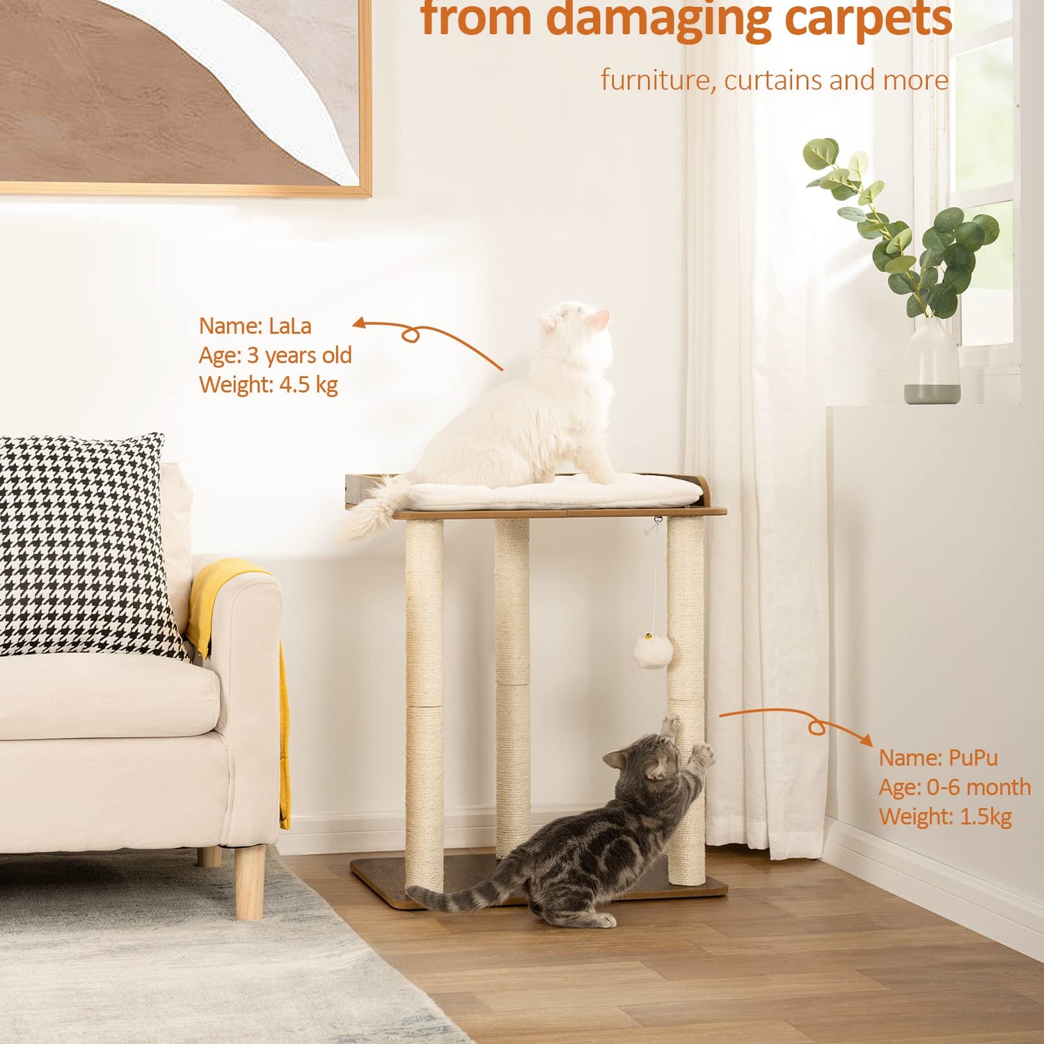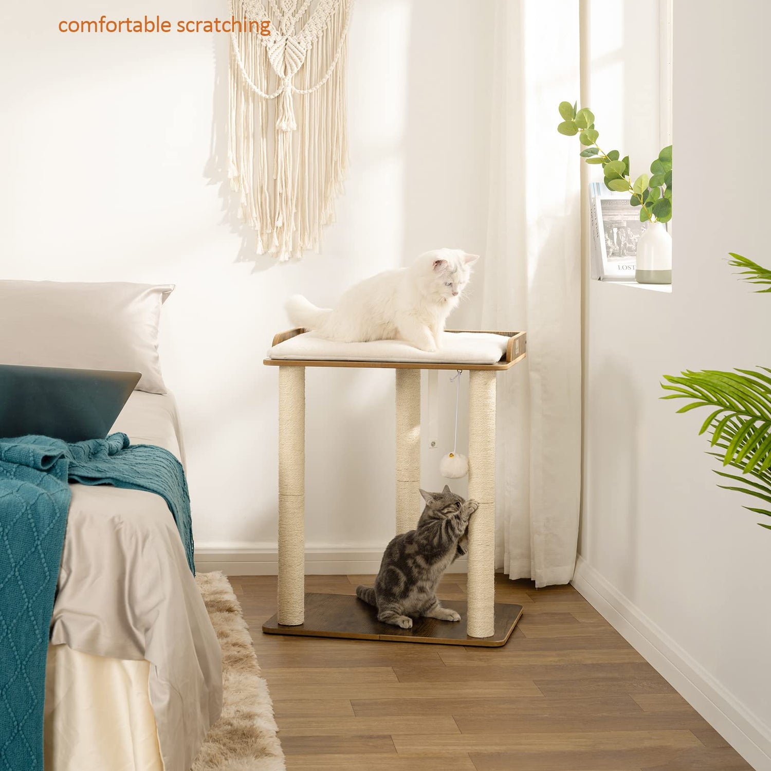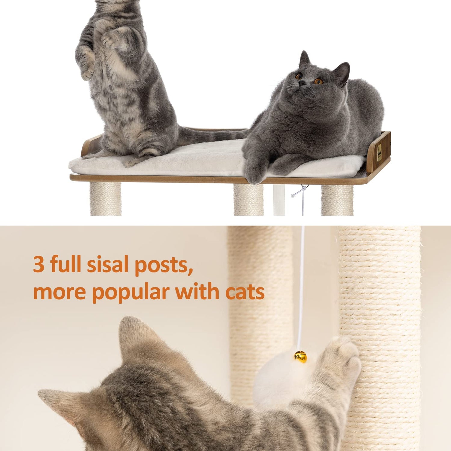 - Super luxury natural sisal posts: three 23.6 inch natural full sisal posts, so that your feline friends have a more comfortable scratching and tickling environment, so away from your furniture, to protect the interior neat and beautiful