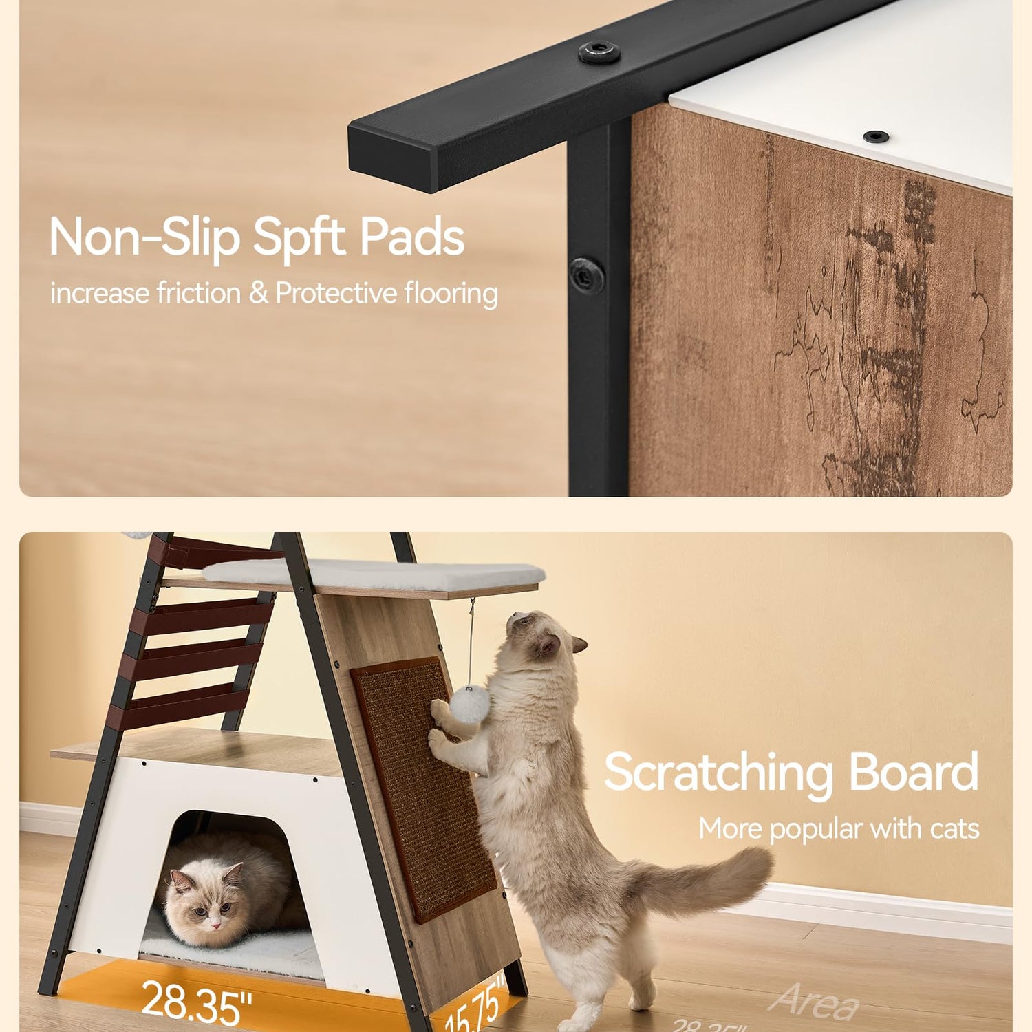 - Stable Design Ensures Safe Jumps: This cat furniture is made of an metal frame structure and an oversized stable base, with a longer service life. The bottom has a non-slip pad and comes with an Anti-tip kit, which is sturdy and stable. Whether climbing to the top or resting on the middle layer, cats can enjoy high stability and play and relax undisturbed.