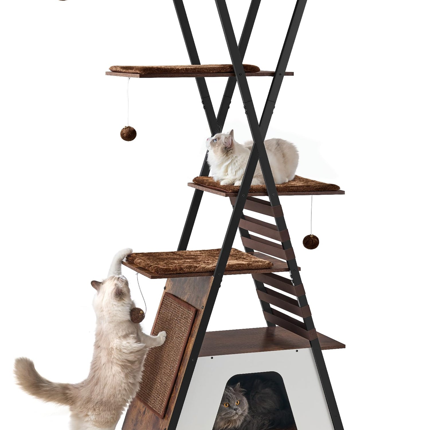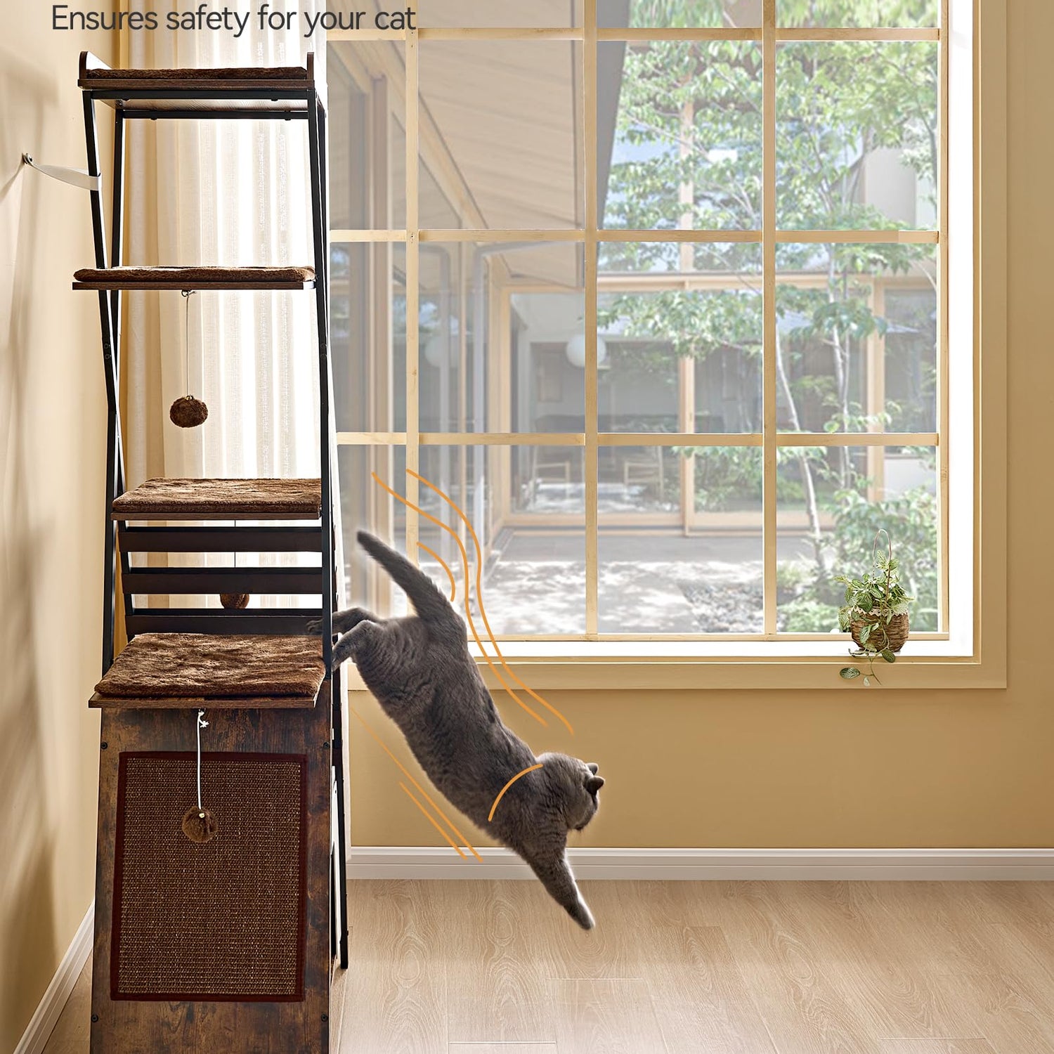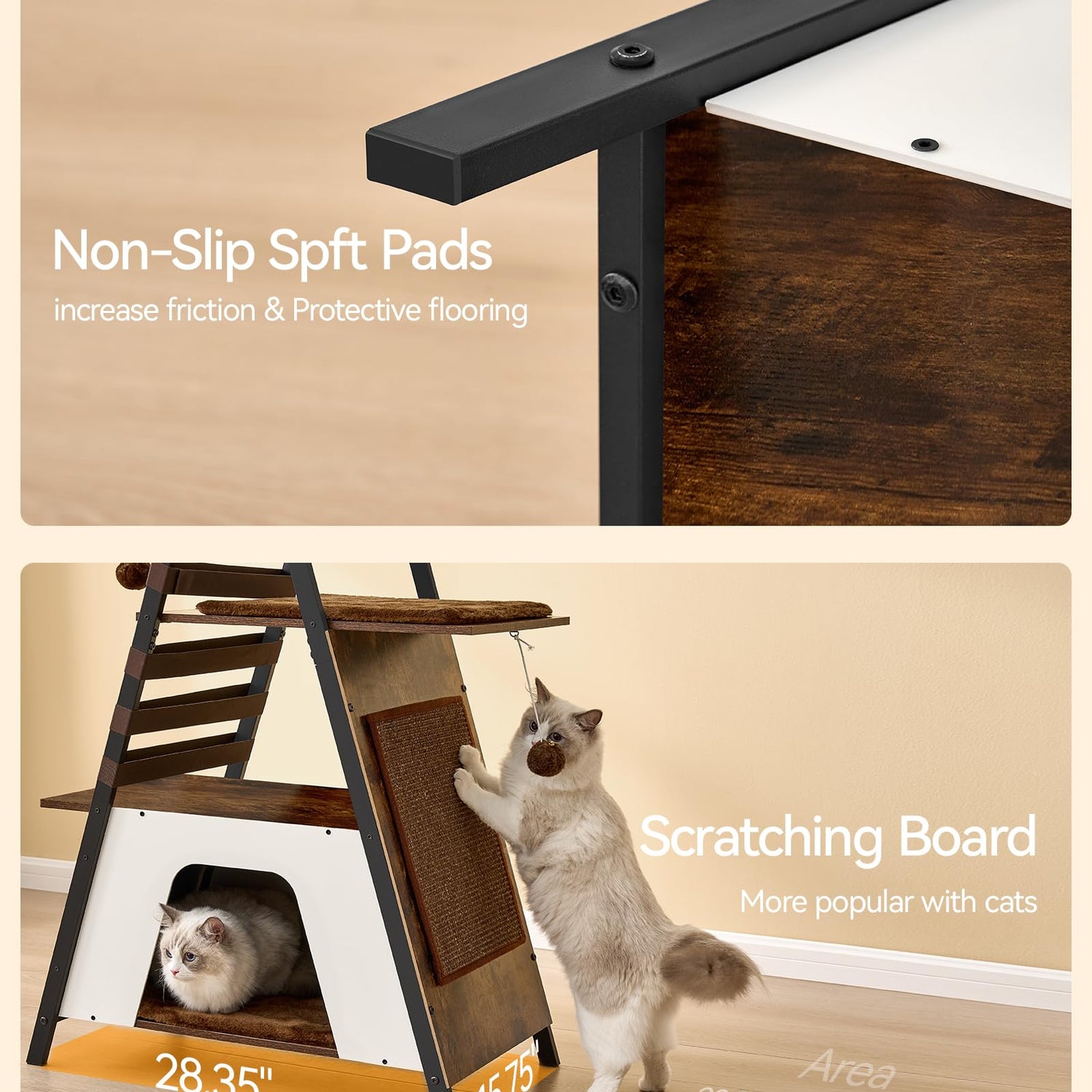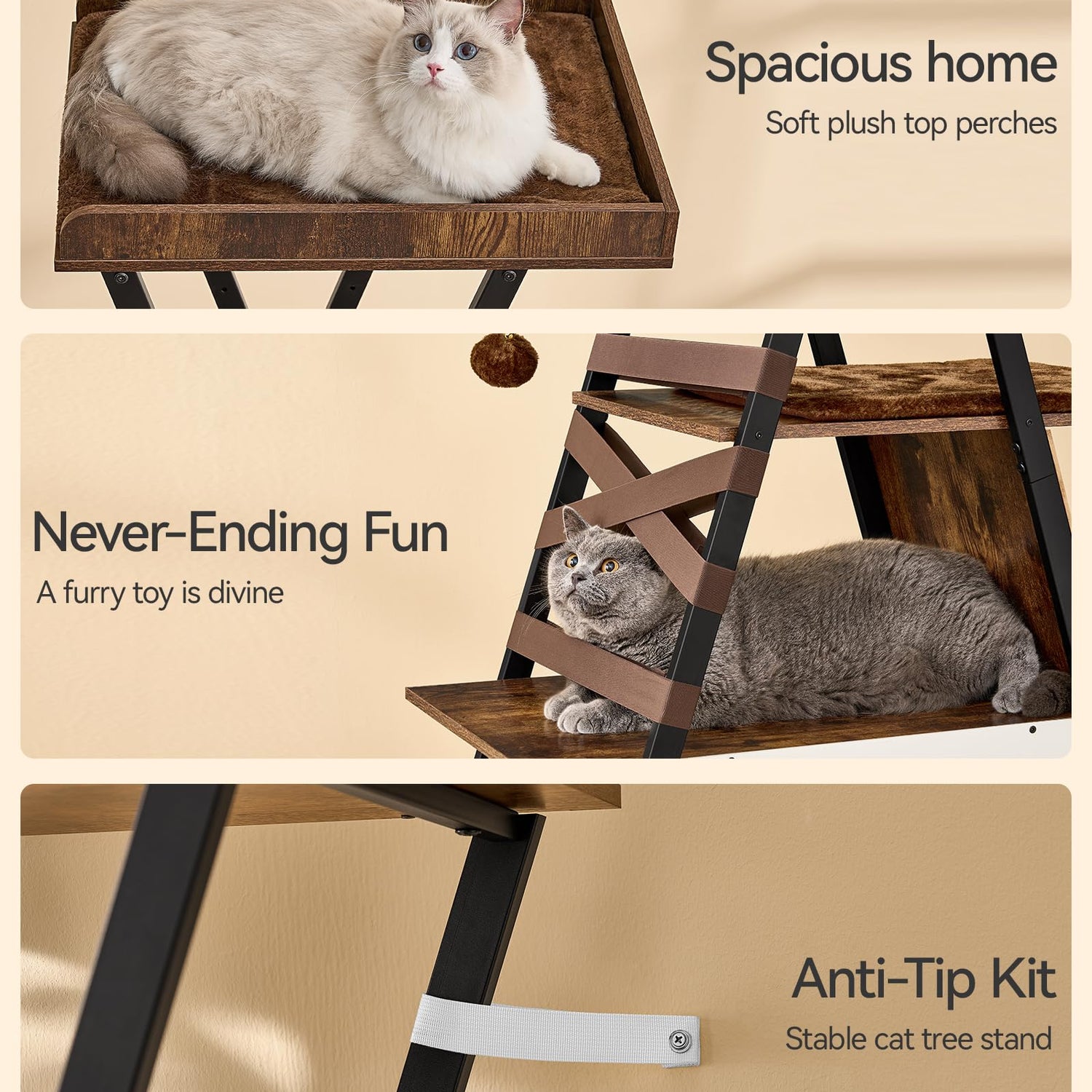 - Stable Design Ensures Safe Jumps: This cat furniture is made of an metal frame structure and an oversized stable base, with a longer service life. The bottom has a non-slip pad and comes with an Anti-tip kit, which is sturdy and stable. Whether climbing to the top or resting on the middle layer, cats can enjoy high stability and play and relax undisturbed.