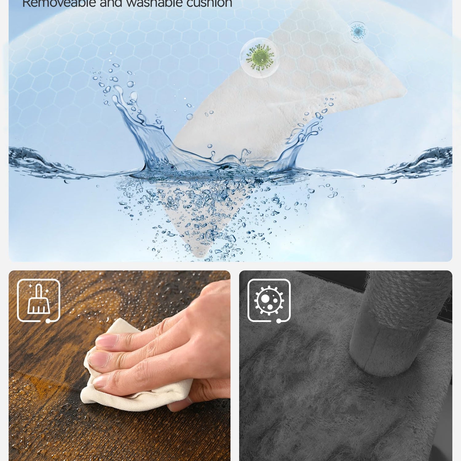 - Easy Maintenance: These cat condo are very easy to clean! During daily care, wipe the surface with a cloth, and use a comb or lint roller to brush the cushions. When thoroughly cleaning, the cushions can be removed for washing.