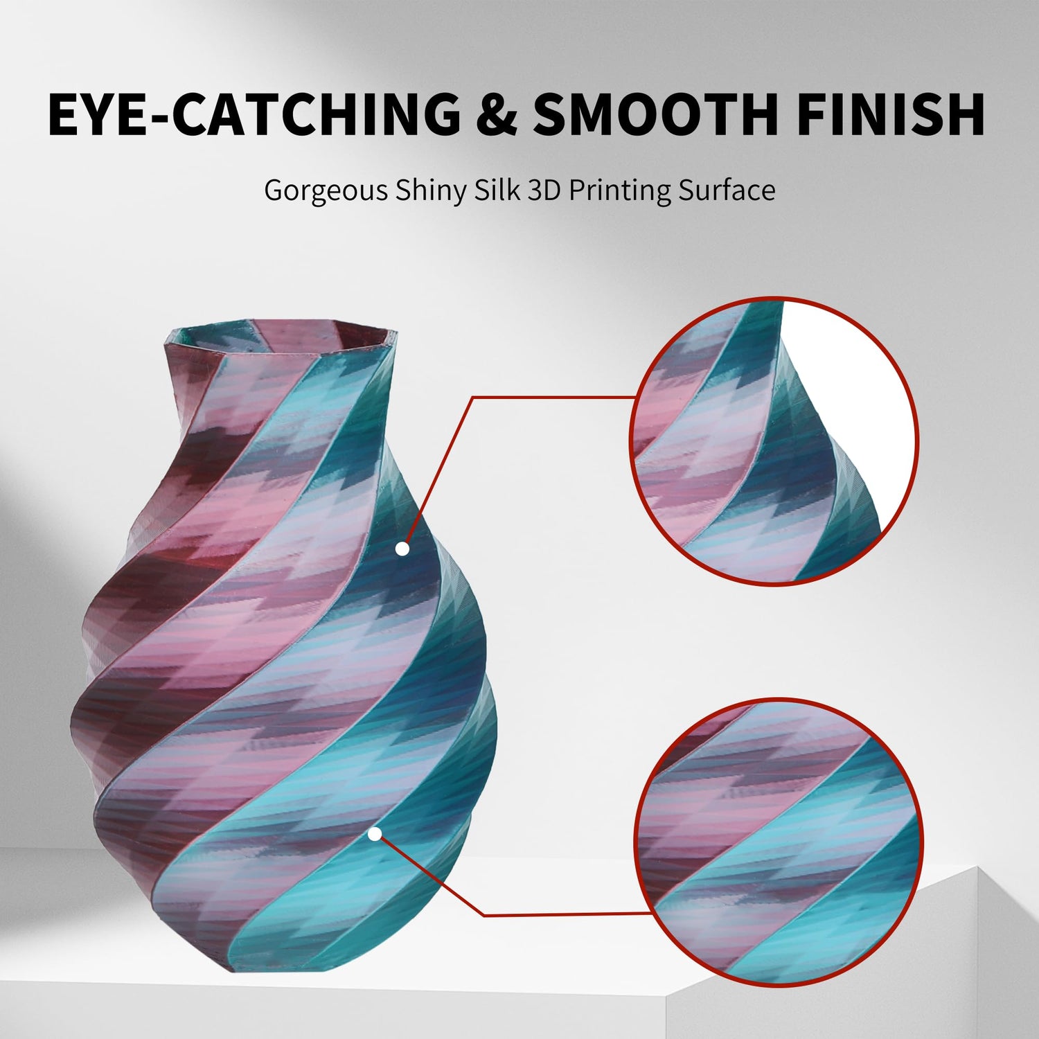 - PLA Plus Raw Material: The raw material comes from Europe, and it has been developed and modulated to show a outstanding print quality on the PLA. No jamming, no bubble, no tangle, and no layer line, just perfect rainbow PLA filament.
