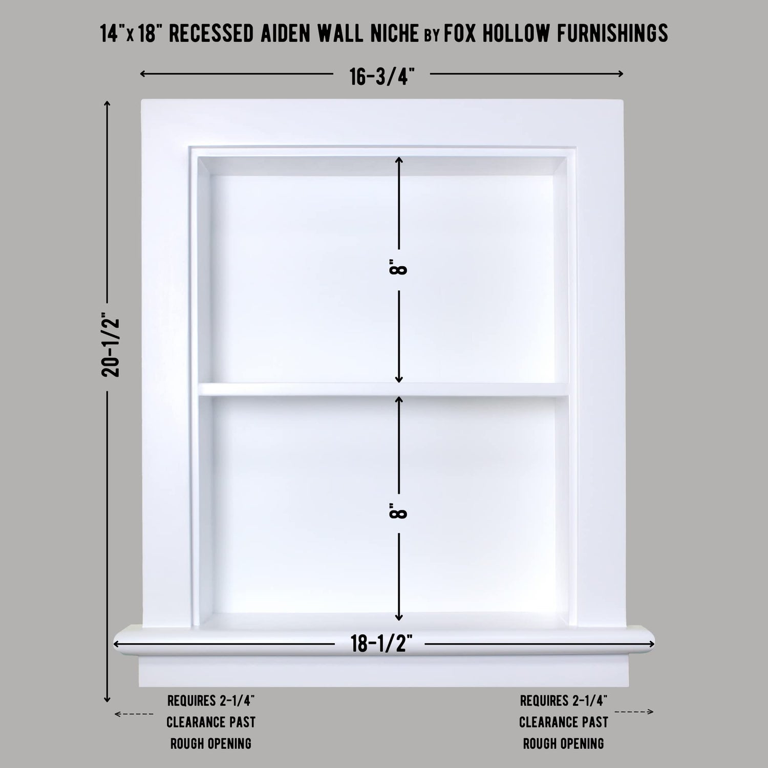 Fox Hollow Furnishings 14x18 Aiden Recessed Wall Niche Medicine Cabinet Replacement, in The Wall Bathroom Cabinet Insert Shelf/Shelves, Made in North America, Real Wood, NO MDF, Plain, White