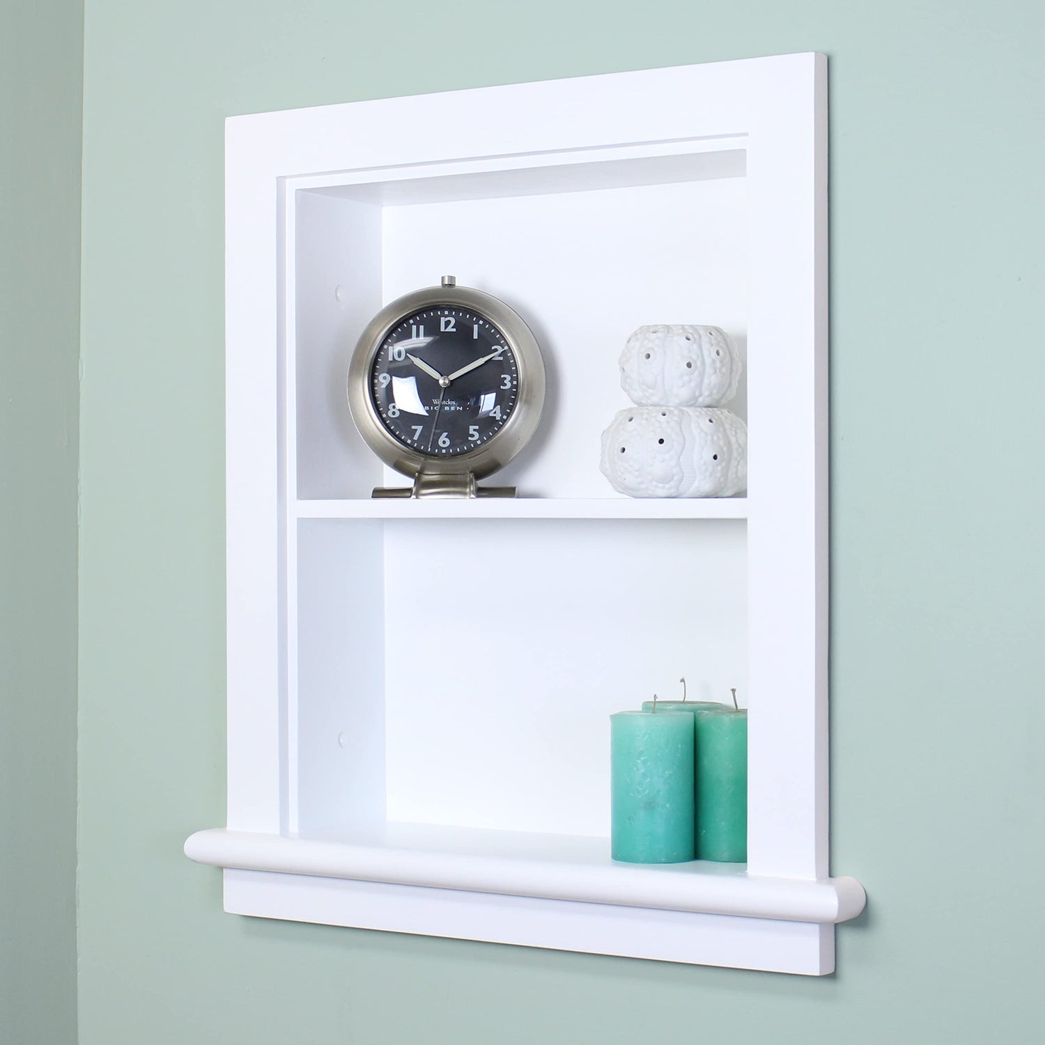 • MOUNTED WALL SHELF - Easy to install and comes fully assembled, the in-wall storage shelves have a sophisticated design and lacquer finish for moisture resistance