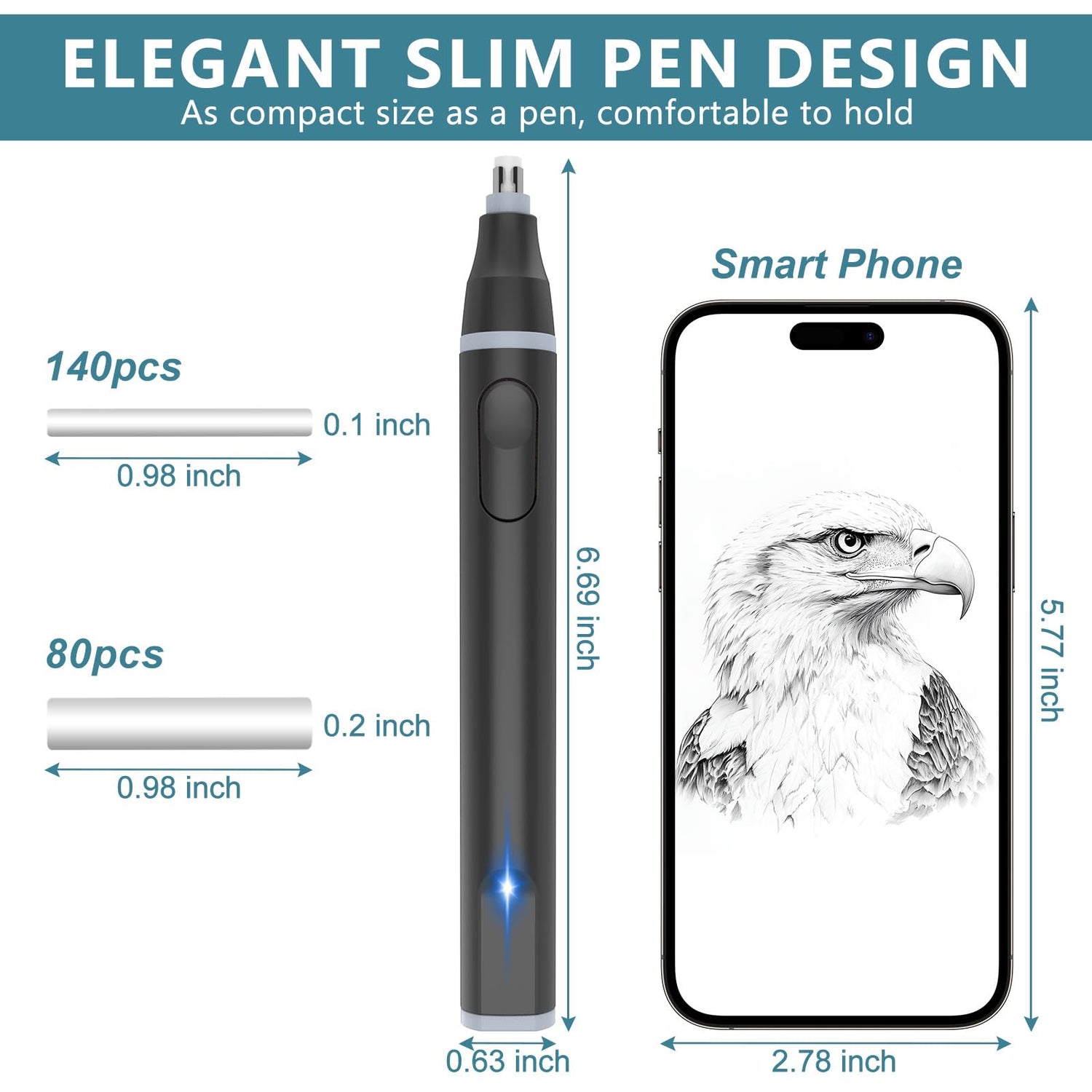 - Dual Eraser Sizes: This rechargeable electric eraser for drawing is equipped with two size eraser holders, can use φ2.3mm or φ5mm erasers. Use the bigger one to create thick highlights and the smaller one to erase tiny parts like hair. This feature makes it an ideal tool for artists and professionals who demand precision and control