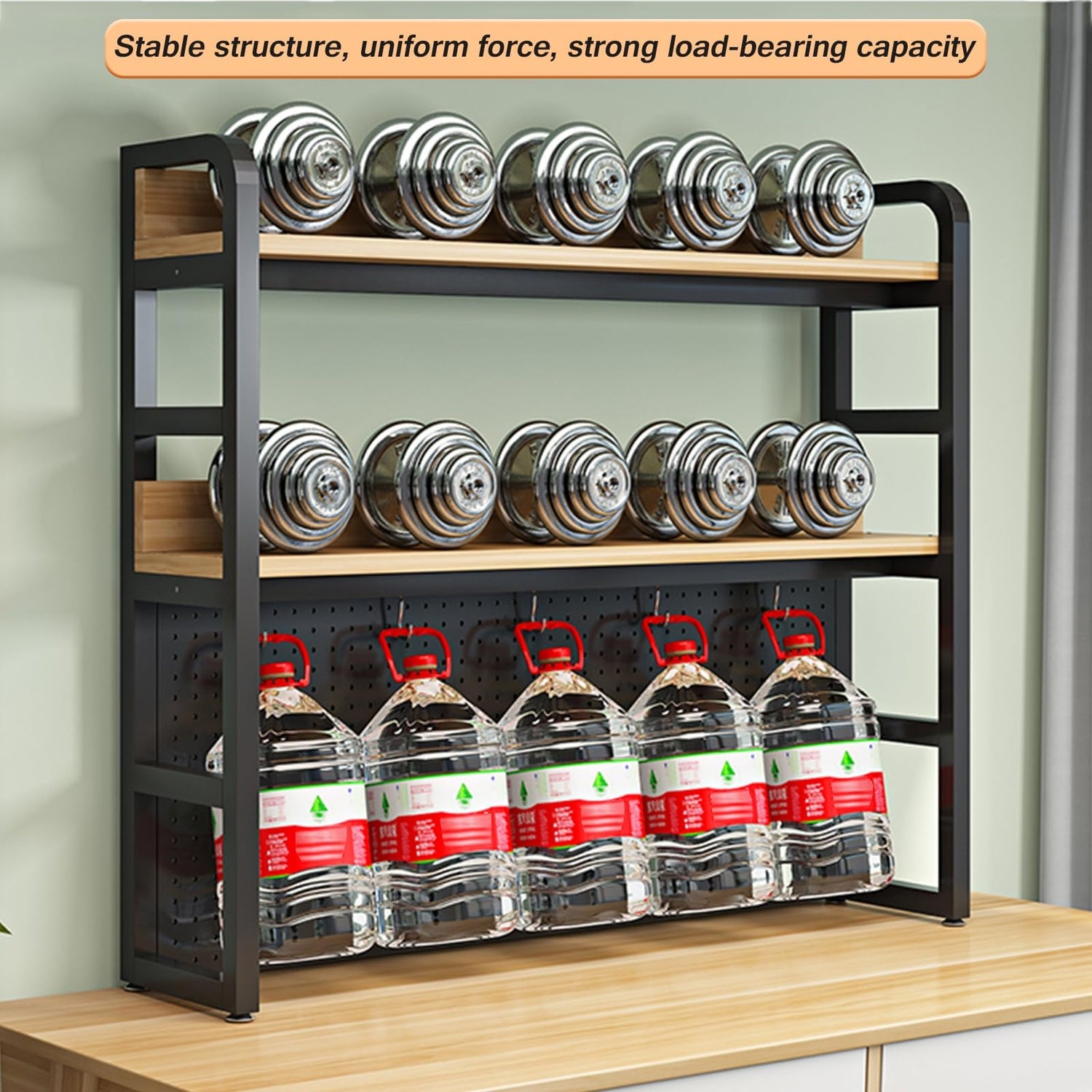 Safety and usability have also been considered, with rounded corners that protect against daily bumps and scrapes, and back baffles that prevent your items from sliding off the shelf. Adjustable foot nails allow for additional stability while safeguarding your desktop from any potential damage.