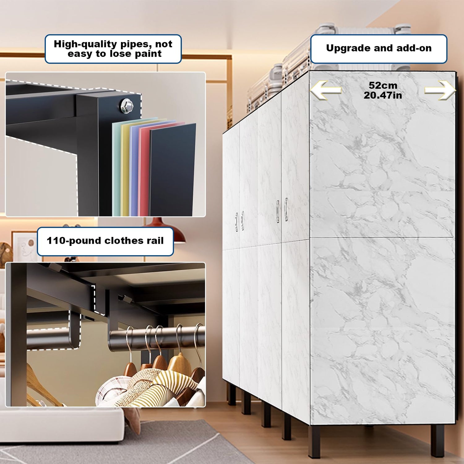 - 【wardrobe closet with doors】 Our portable wardrobe with magnetic doors that can be opened 180° and closed magnetically. You can create a protective barrier for your clothes without bending over to prevent pets from entering, so your clothes are always fresh and new. When guests enter your room, it is still tidy and clean to protect privacy.