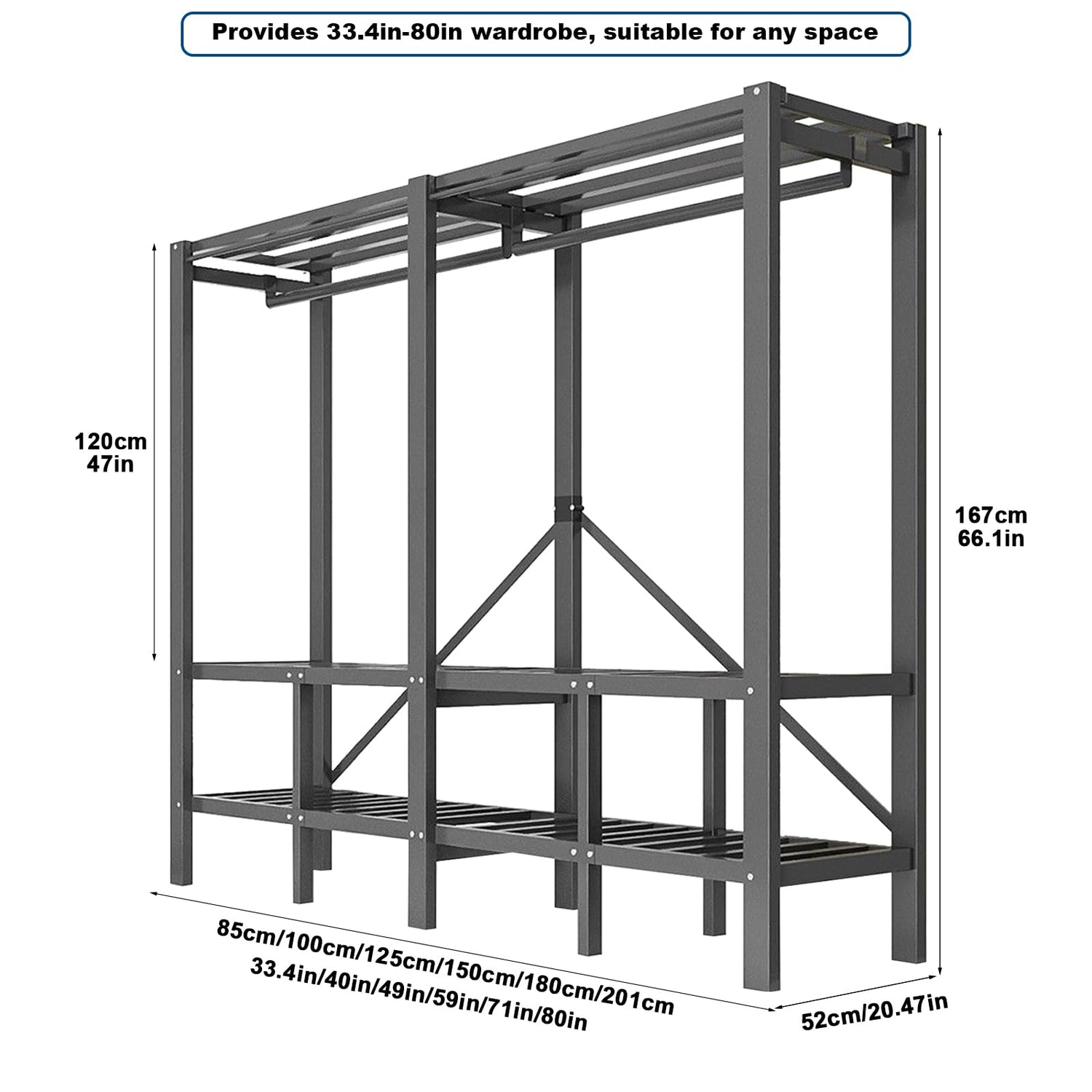 - 【Clothing Rack Can large capacity】Large Metal Cloths Rack upgrades the width to 20.47in, 33.5-80in length options fit any of your space needs and hold your clothes with ease, 3tier storage space for suitcases, organizers, baskets, and folded clothes.,You can hang all the clothes in your house and storage store clothing, shoes, socks, bags,Freestanding Clothes Organizer System You can hang up all the clothes of your family.
