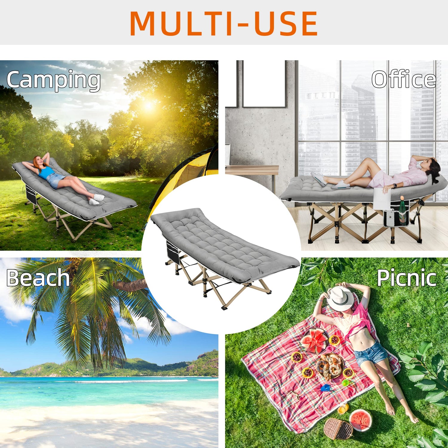 Fragess Portable Camping Cot, 600LBS Max Load, Extra Wide with Thick Mattress, Folding Cot for Outdoor Camping/Office, Home Nap (Grey)