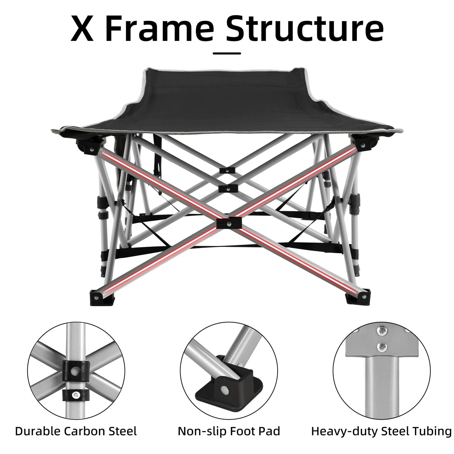 - Durable Structure & 600 Lbs Max Load: Fragess camp cot is constructed in a triangular shape and thicker steel. Each heavy duty cot leg has non-slip pads to ensure safety and stability. Folding camping cot can withstand 600 lbs, won't squeak or shake when you sleep, ideal sleeping cots for adults. Cot size:75 x 28 x 13.8 inch