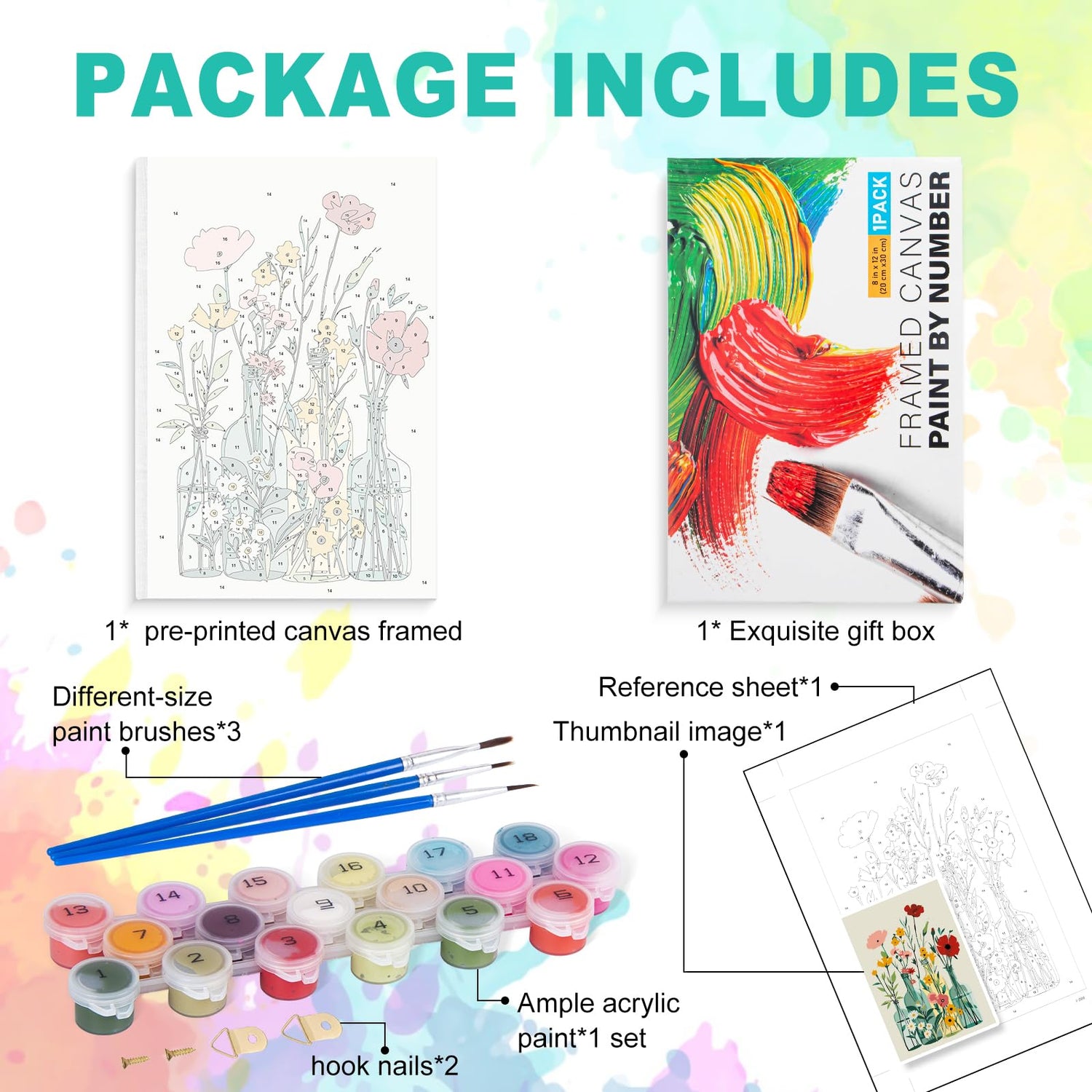 Framed Paint by Numbers Kit for Adults Beginner, Flower in Vase Easy Paint by Number Kits on Canvas Framed, Floral DIY Acrylic Oil Painting by Numbers with Frame for Gift Home Decor 8 x 12 inch