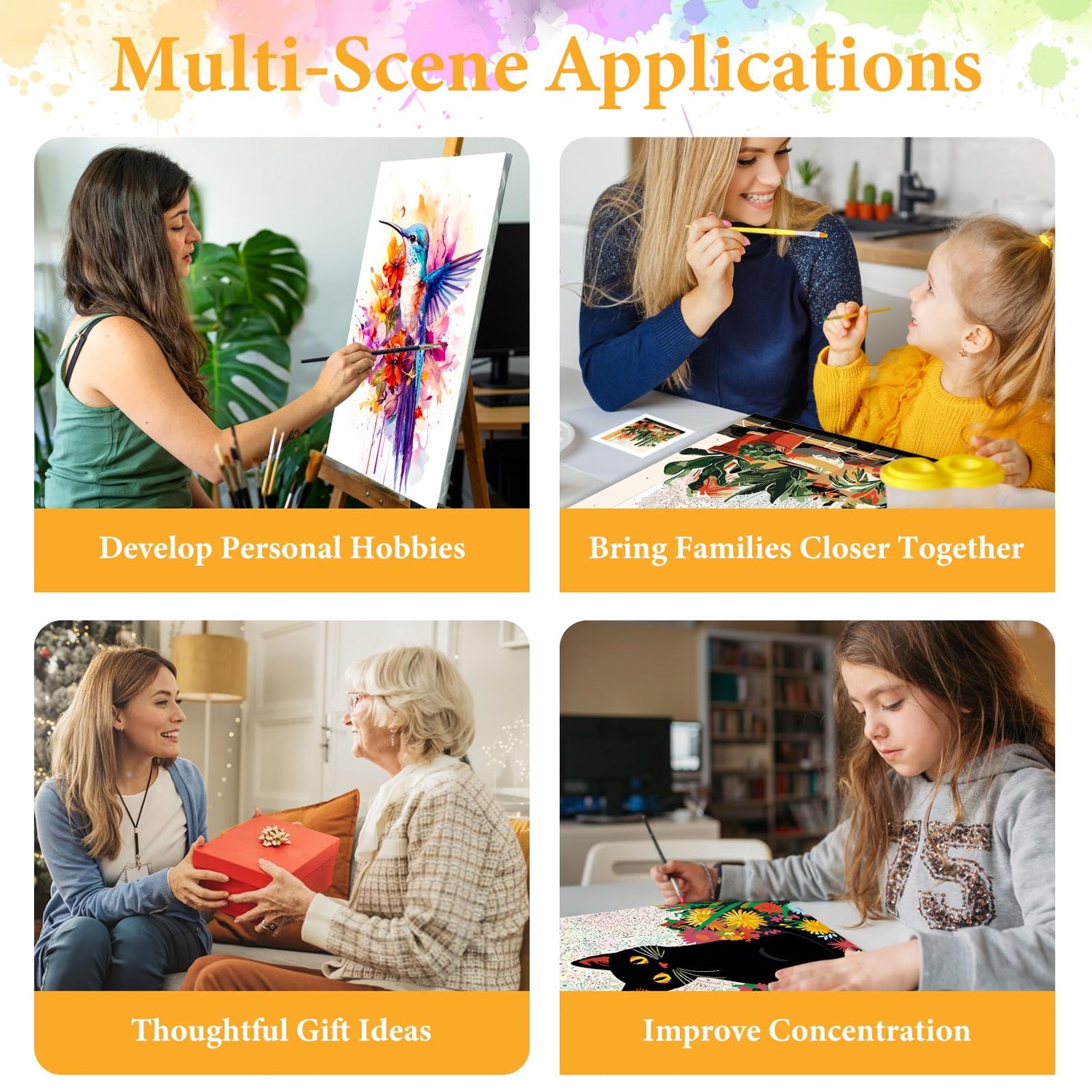 - Artistic Self-Actualization: The process of completing a framed paint by numbers kit for adults is the perfect embodiment of a sense of achievement. From outlining the contours to filling in the colors, every step is clearly visible. When the final stroke is applied, gazing upon the artwork created by your own hands, a profound satisfaction naturally arises—realizing that art is not out of reach, and everyone can become the creator of their own life's masterpiece.