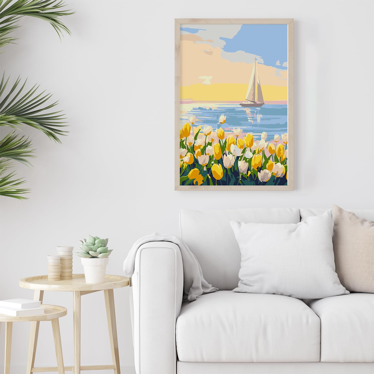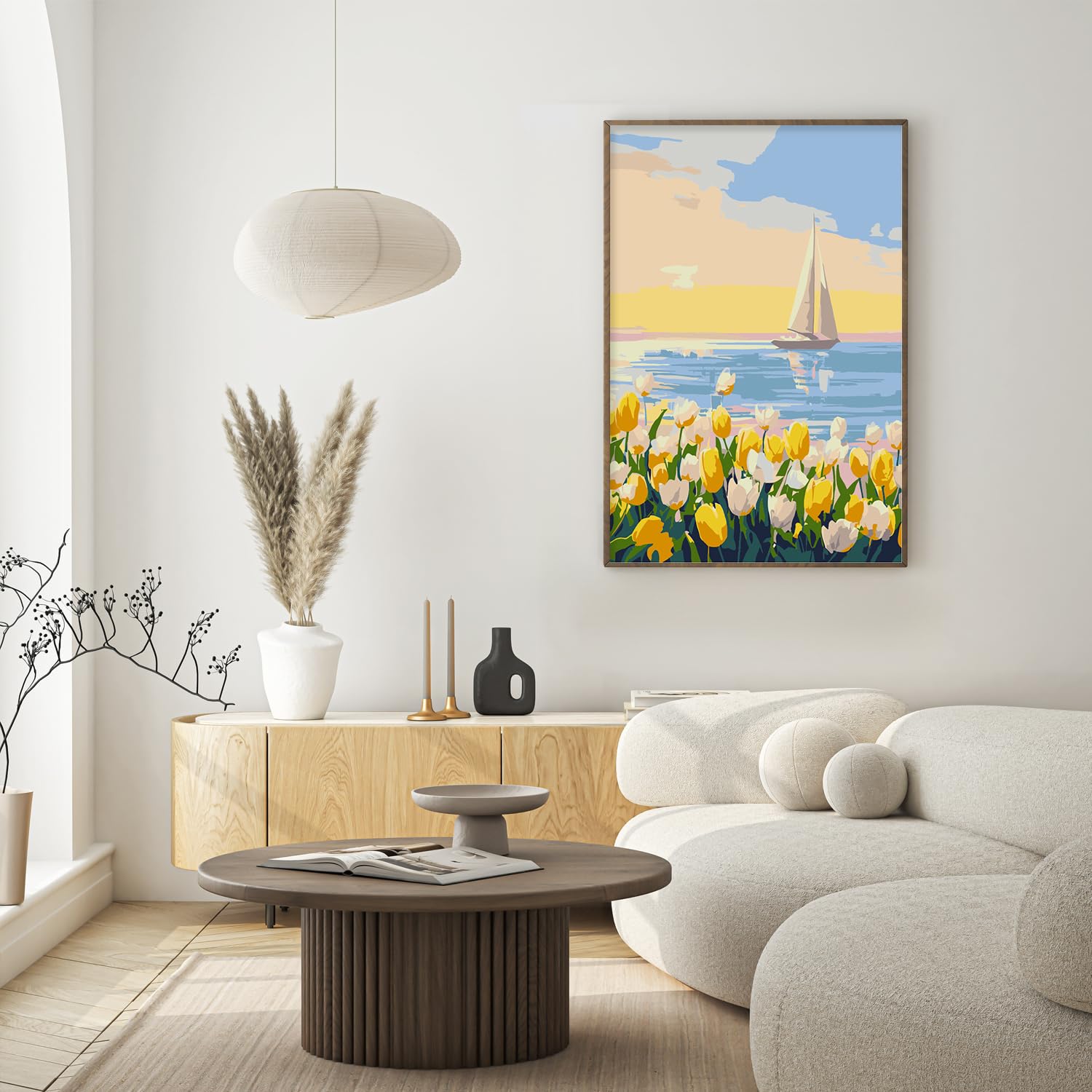 Framed Paint by Numbers Kit for Adults Beginner & Kids Age 8-12, Easy Flowers Adult Paint by Number Kits on Canvas, DIY Acrylic Watercolor Oil Paint by Number for Adults Landscape for Gift 8x12 Inch