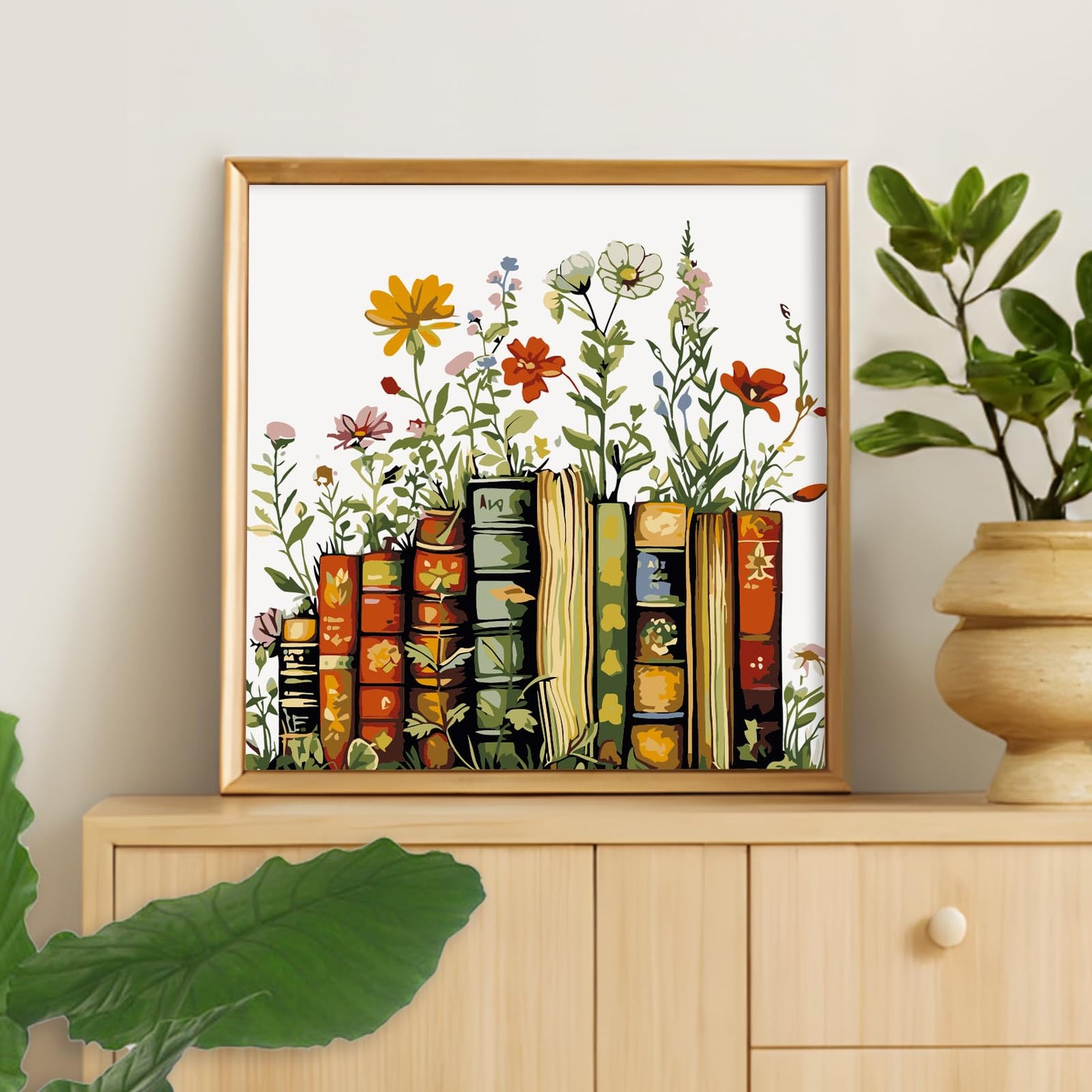Framed Paint by Numbers Kit for Adults Beginner & Kids Ages 10-13, Books Easy Paint by Numbers with Frame, Flowers Acrylic Adult Painting by Number Kits on Canvas Framed for Gift Decor 10 x 10 Inch