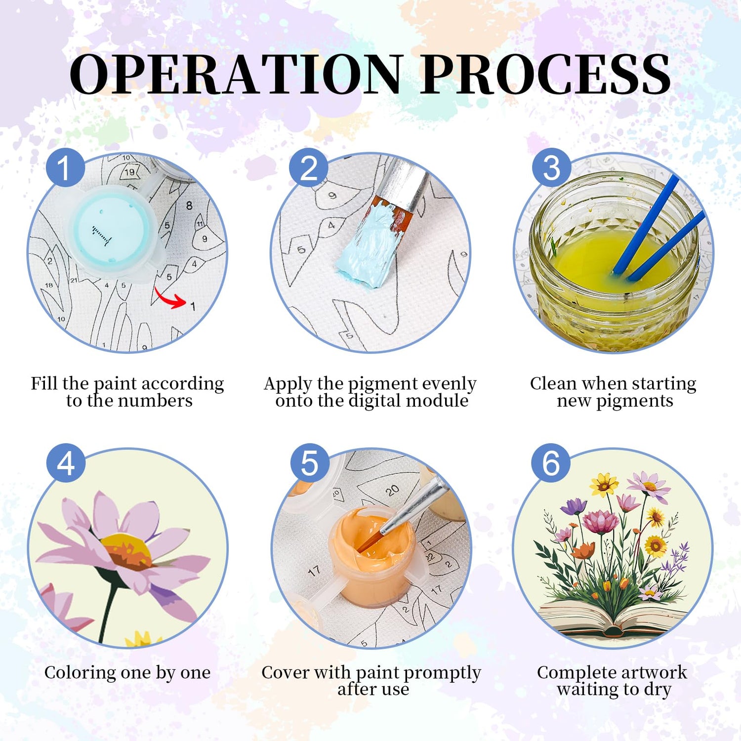 Framed Paint by Numbers Kit for Adults Beginner & Kids Ages 10-13, Books Easy Paint by Numbers with Frame, Flowers Acrylic Adult Painting by Number Kits on Canvas Framed for Gift Decor 10 x 10 Inch