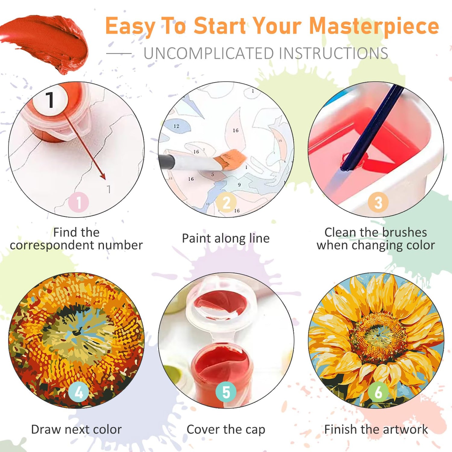 Framed Paint by Numbers Kit for Adults Beginners & Kids Ages 8-12, Sunflower Acrylic Easy Paint by Number with Frame, Watercolor Paint by Number Kits on Canvas Framed (10 * 10 Inch, without Easel)