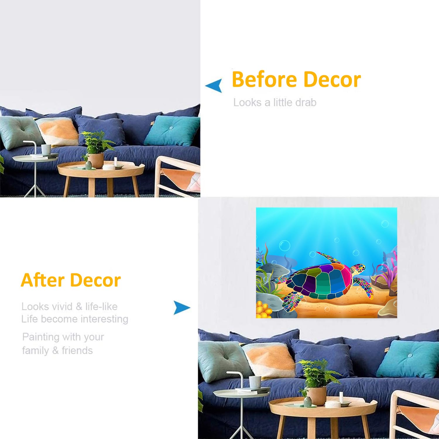 Framed Paint by Numbers Kits for Kids- Number Painting DIY Craft Kits - 16x12 Inch Acrylic Oil Painting On Canvas with Framed - Painting Set for Kids & Beginner & Adult, Colorful Sea Turtle