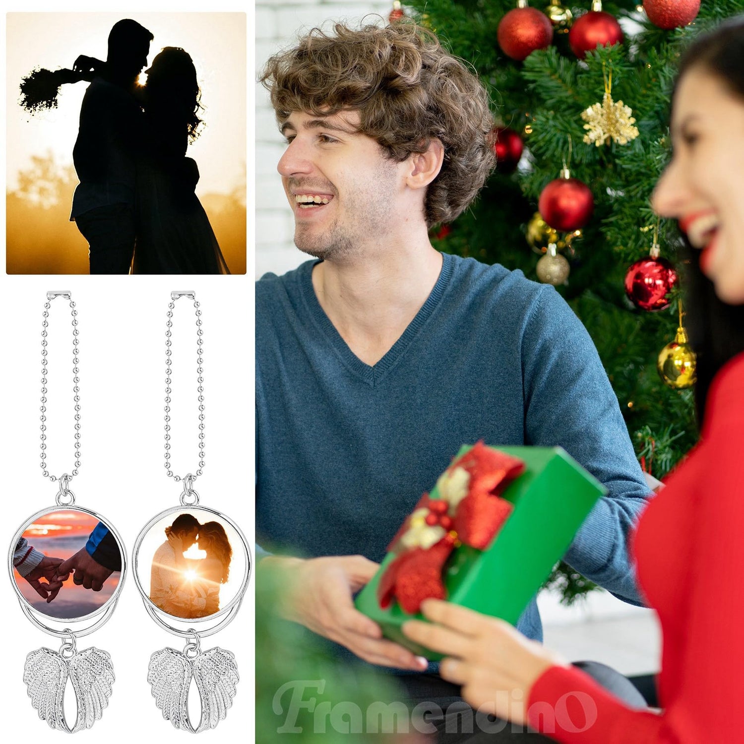 Framendino, 10 Pack Silver Angel Wing Pendant Car Hanging Ornament with Sublimation Blank Heat Transfer Photo for Home Window