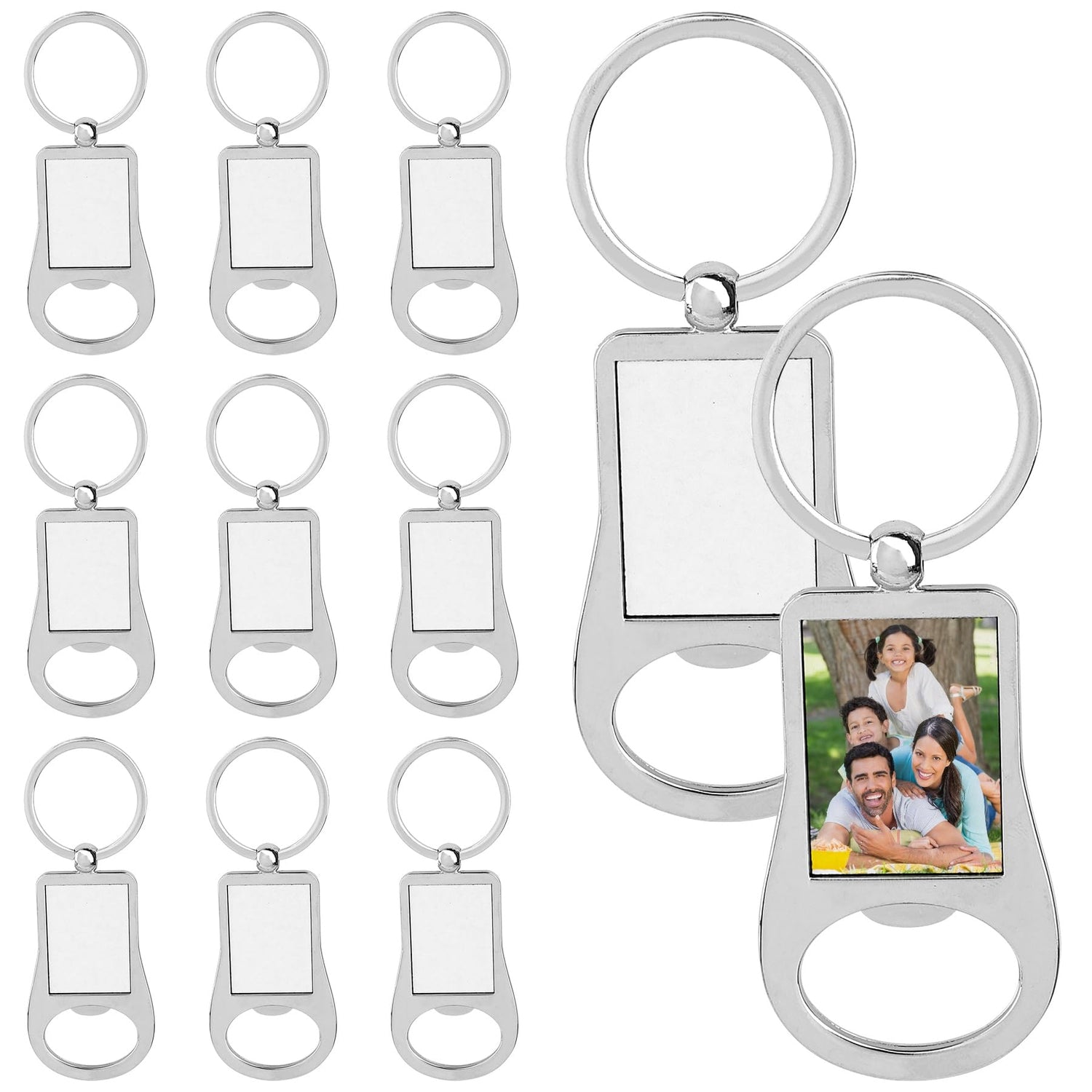 Framendino, 10 Pack Sublimation Blank Keychains Metal Bottle Opener Transfer Keychain Key Rings for DIY Personalized Photos (Rectangle)
