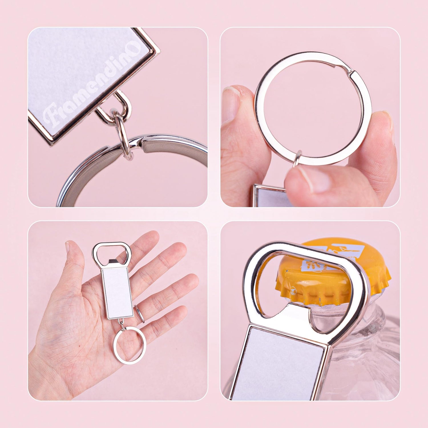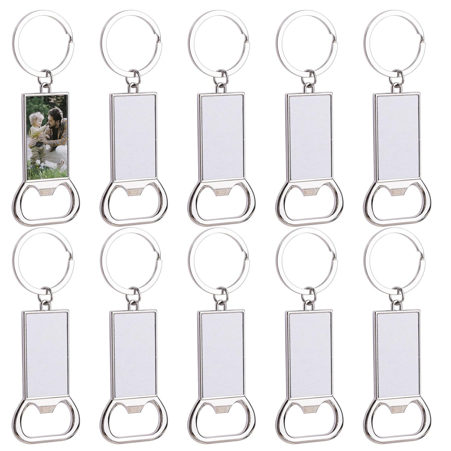 Framendino, 10 Pack Sublimation Blanks Bottle Opener Metal Keychains Blank Key Rings for Sublimation Photo