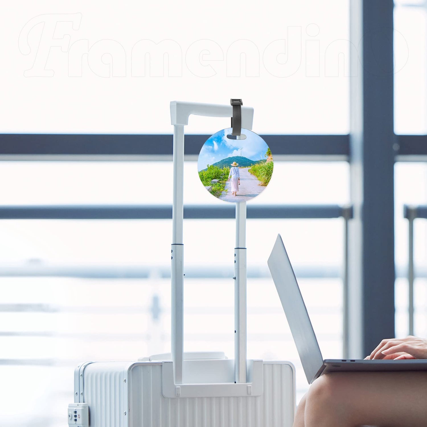 Framendino, 10 Pack Sublimation Blanks Round Luggage Tags with Strap MDF Heat Transfer Double Sided DIY