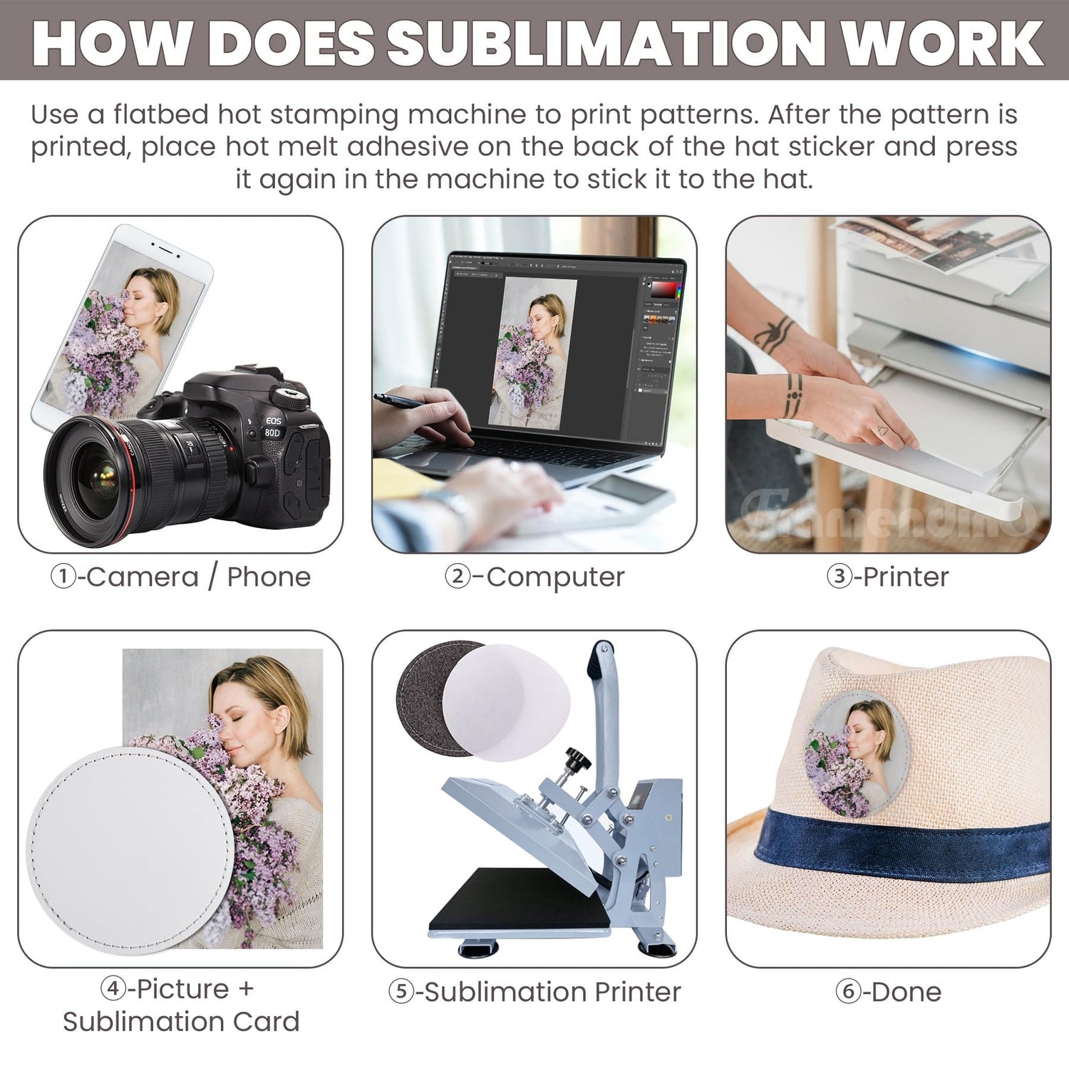 - (Easy to Use) Suggested Temperature Is 180 Degrees Celsius; The Time Is Around 40-50 Seconds; After The Logo Is Printed, Place The Hot Melt Adhesive on The Back of The Hat Sticker and Press It Again In The Machine for About 15-20 Seconds to Stick It to The Hat.