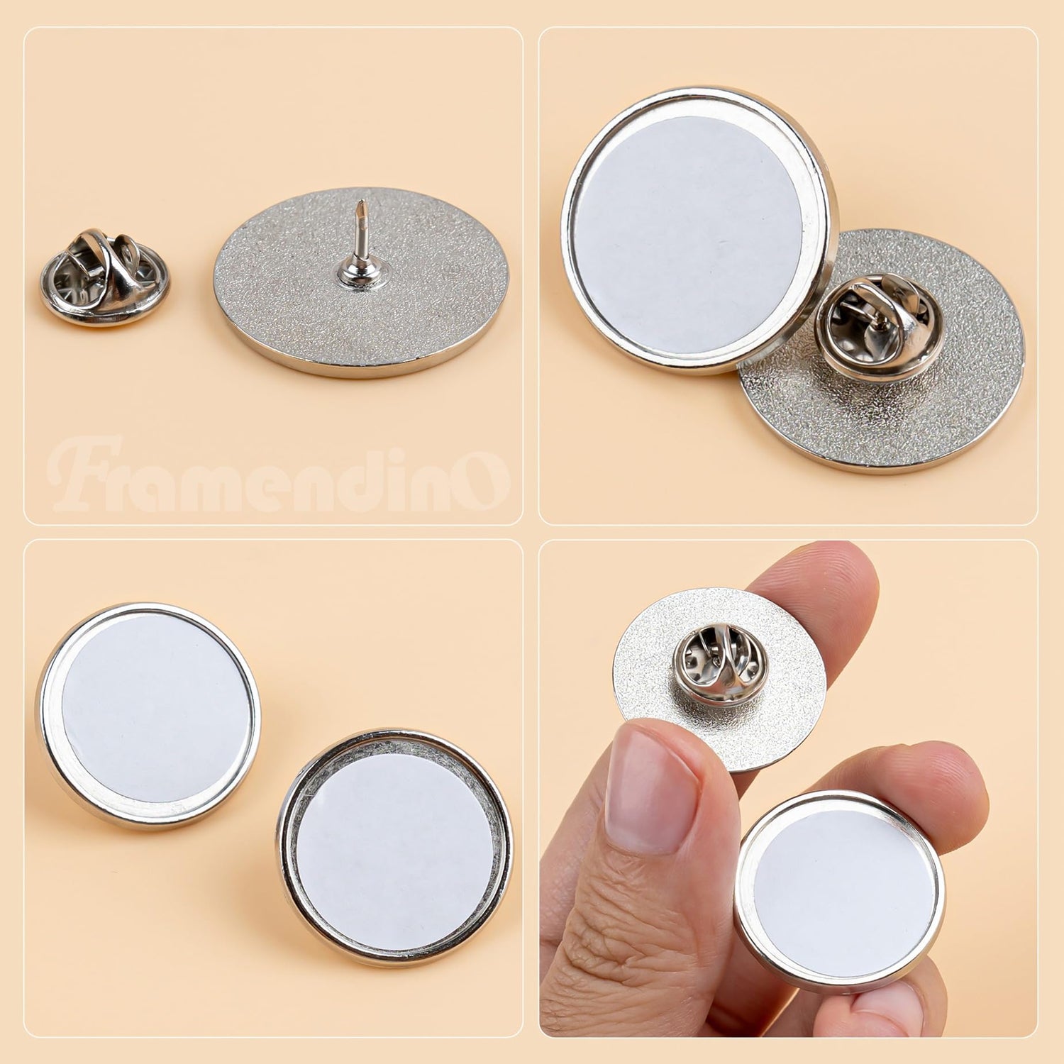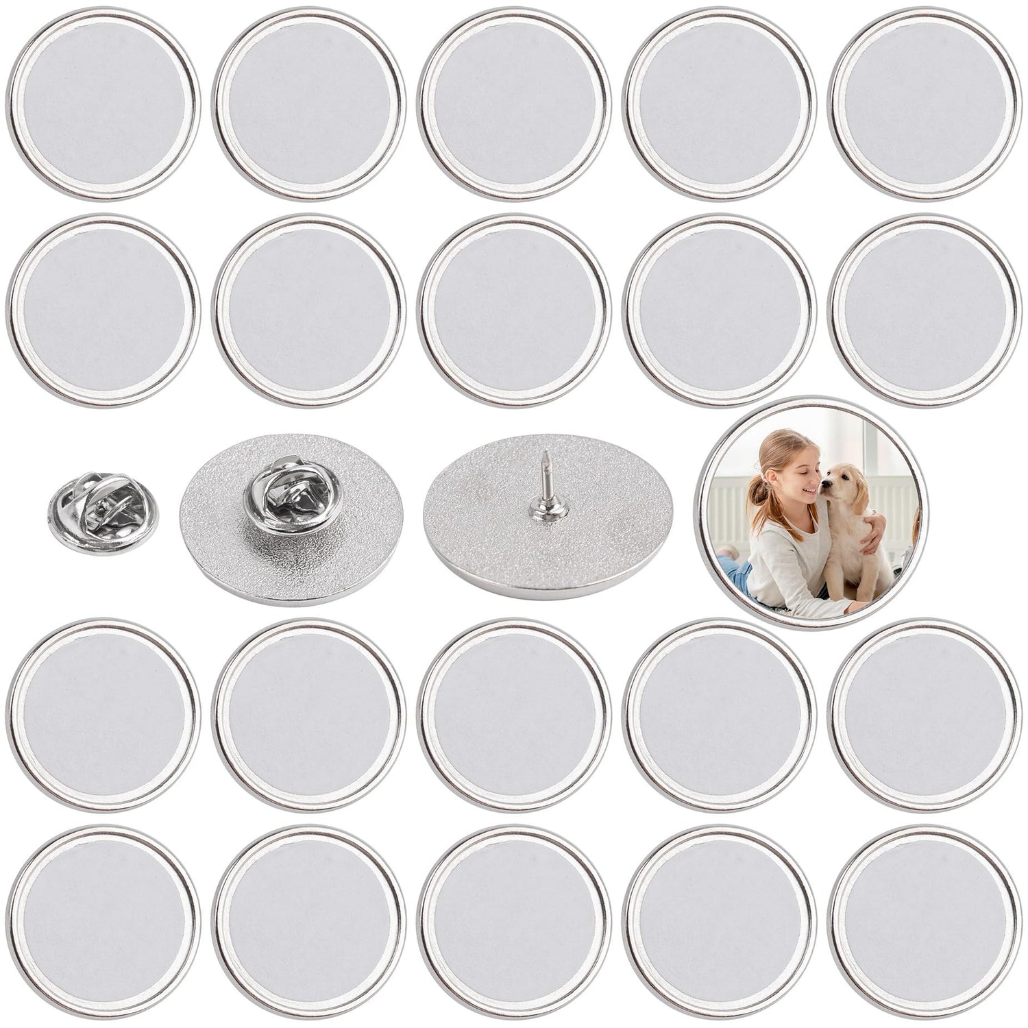 Framendino, 20 Pack Silver Sublimation Blank Pins DIY Button Badges Round Sublimation Blank Base Pin Aluminum Sheet with Butterfly Pin Backs for DIY Craft Lapel Jewelry Making