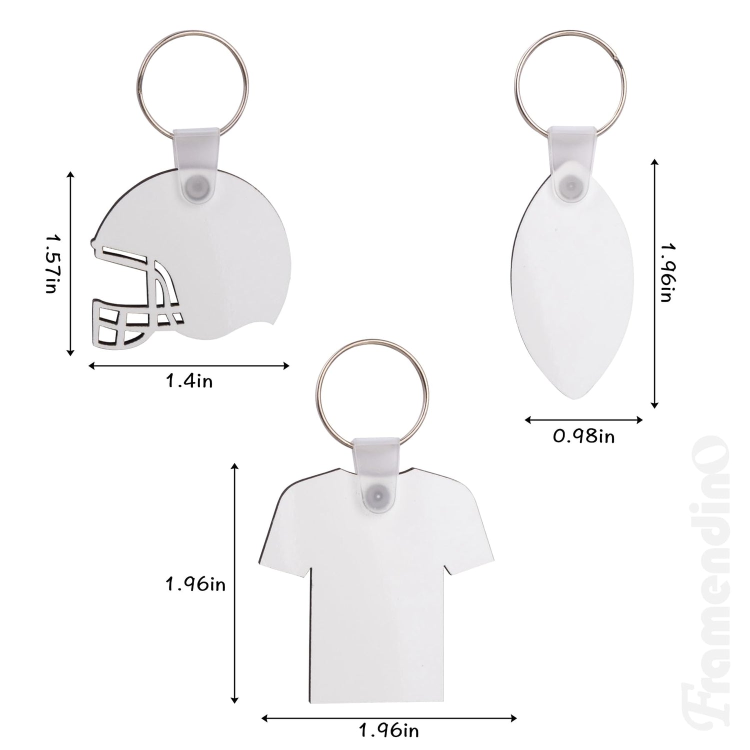 Framendino, 36 Pack 3 Styles Sublimation Keychain Blanks MDF Double Sided Heat Transfer Keychain Rugby Key Chains Bulk for DIY Craft