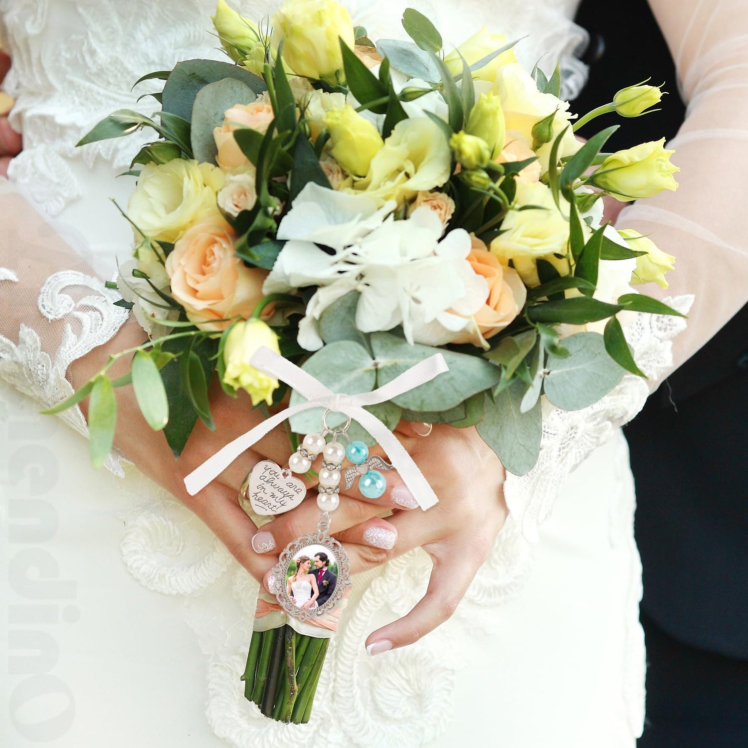 - (DIY crafts) wedding bouquet charms with a sheet for you heat transfer photo of that special person who will not be able to be with you on your wedding day, can enough for your needs in decorating the wedding bouquet