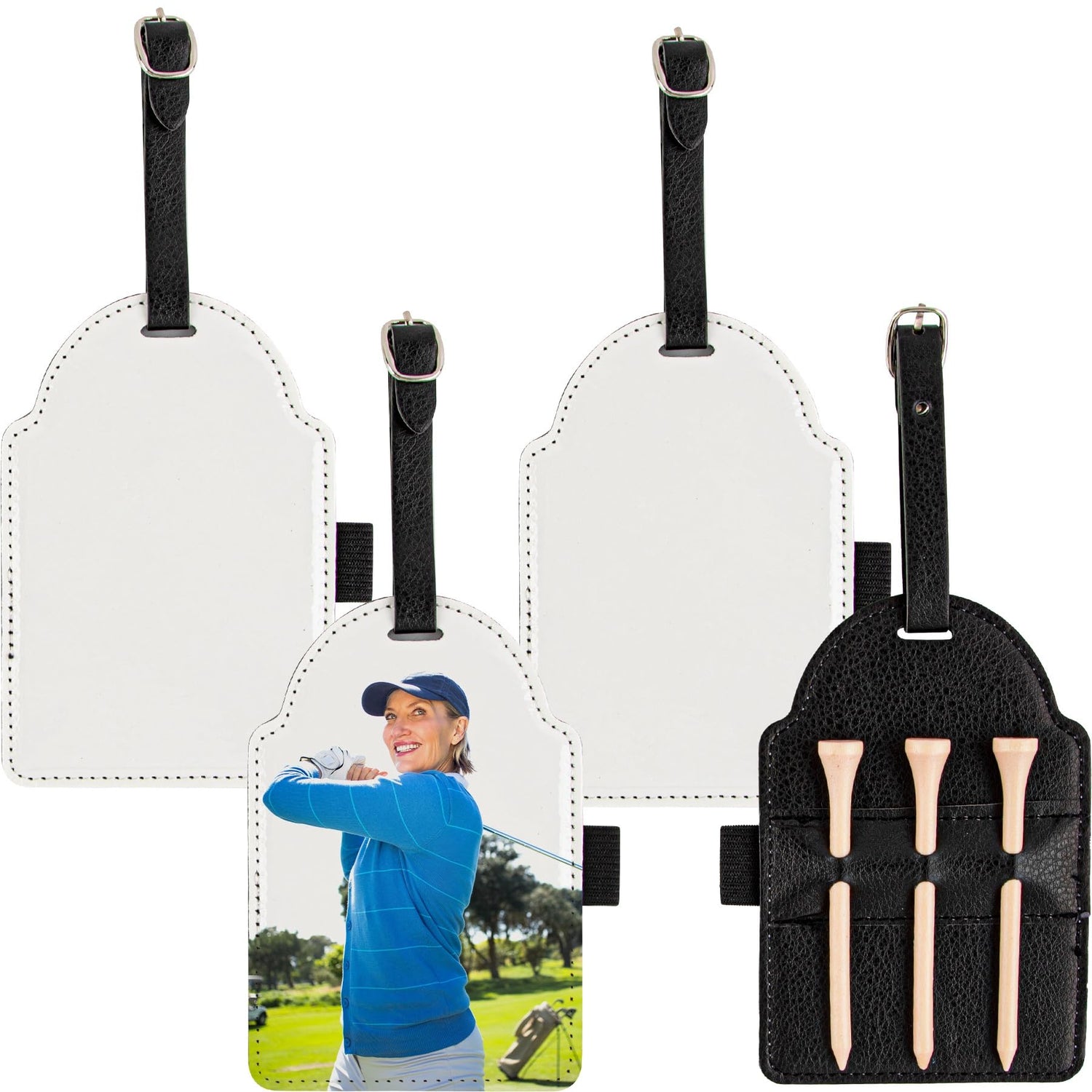 Framendino, 4 Pack Sublimation Blank Golf Tee Holders with Golf Tees Pu Leather Golf Ball Storage Bag for DIY Heat Transfer