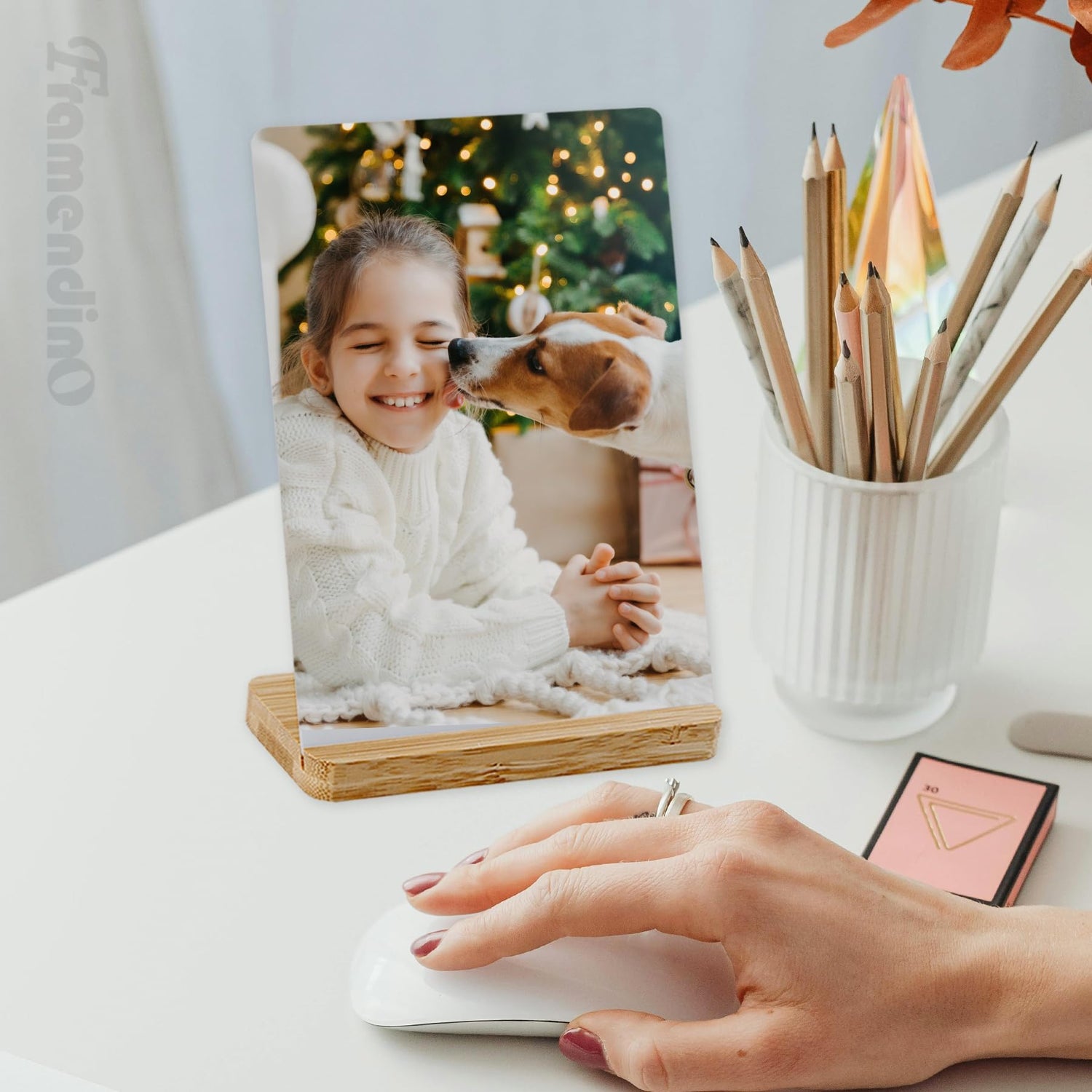 Framendino, 4 Pack Sublimation Photo Frames Blanks 5 x 7 Inch Heat Transfer Metal Picture Frames with Wood Base DIY Photo Prints