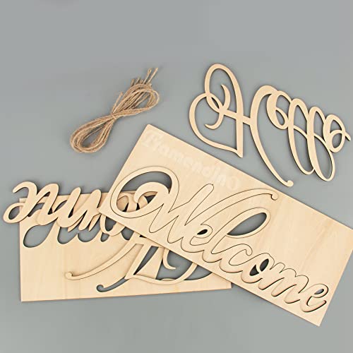 Framendino, 4 Pack Unfinished Wood Sign Natural Cutout Wooden Welcome Hello Home Love Sign DIY Block Words Letters Decorative Signs