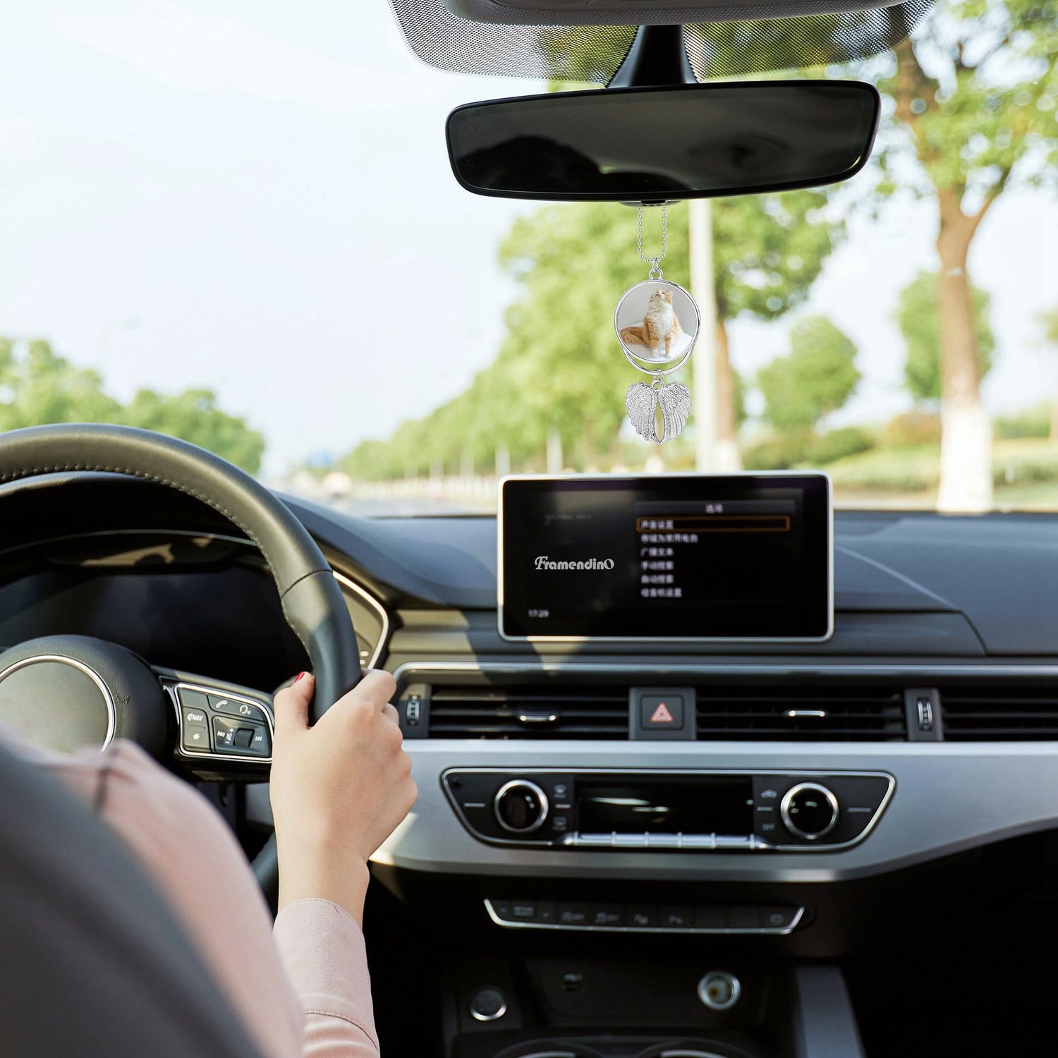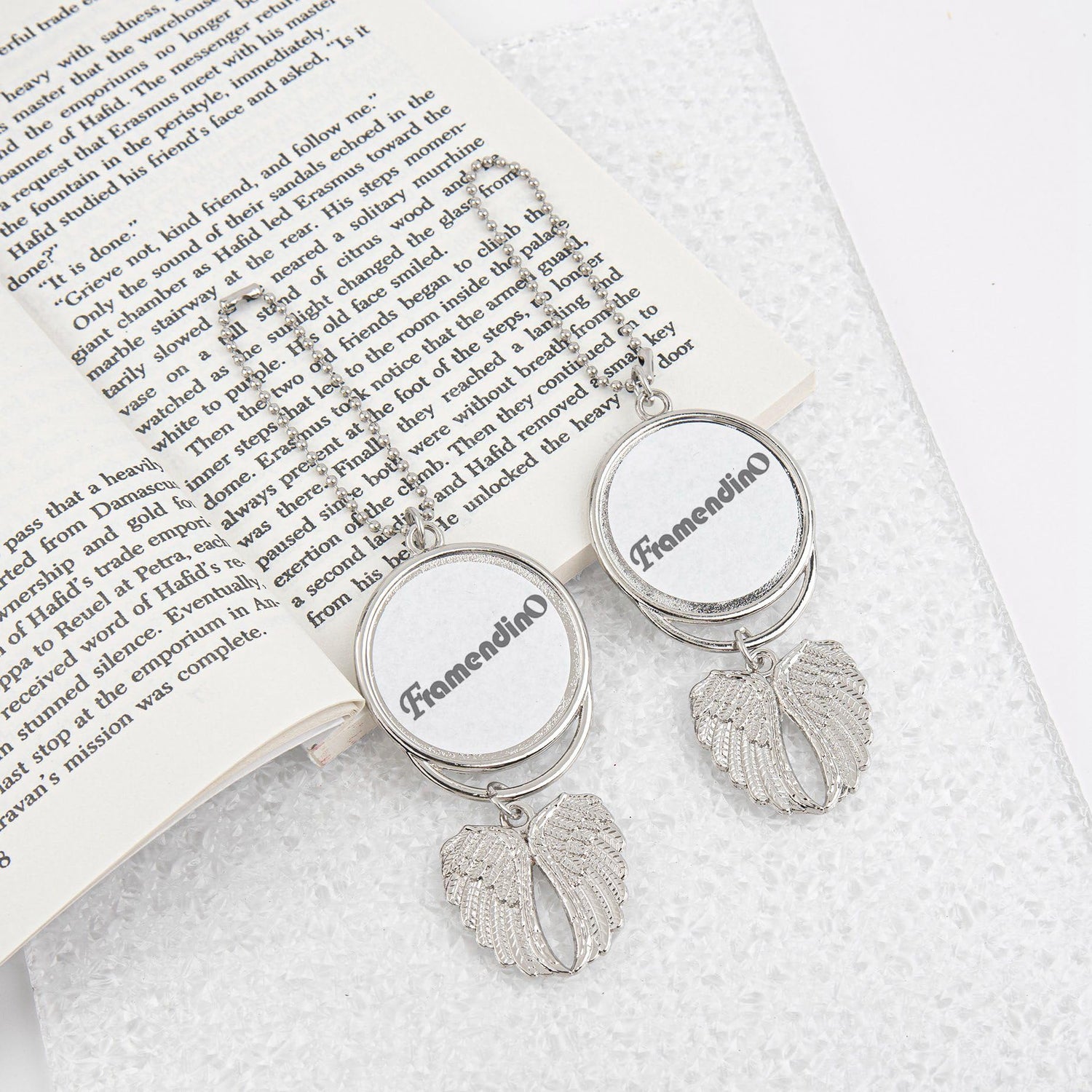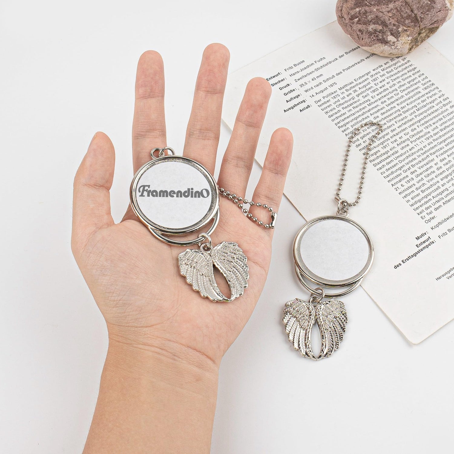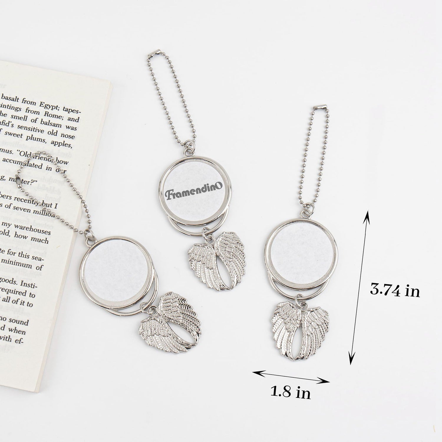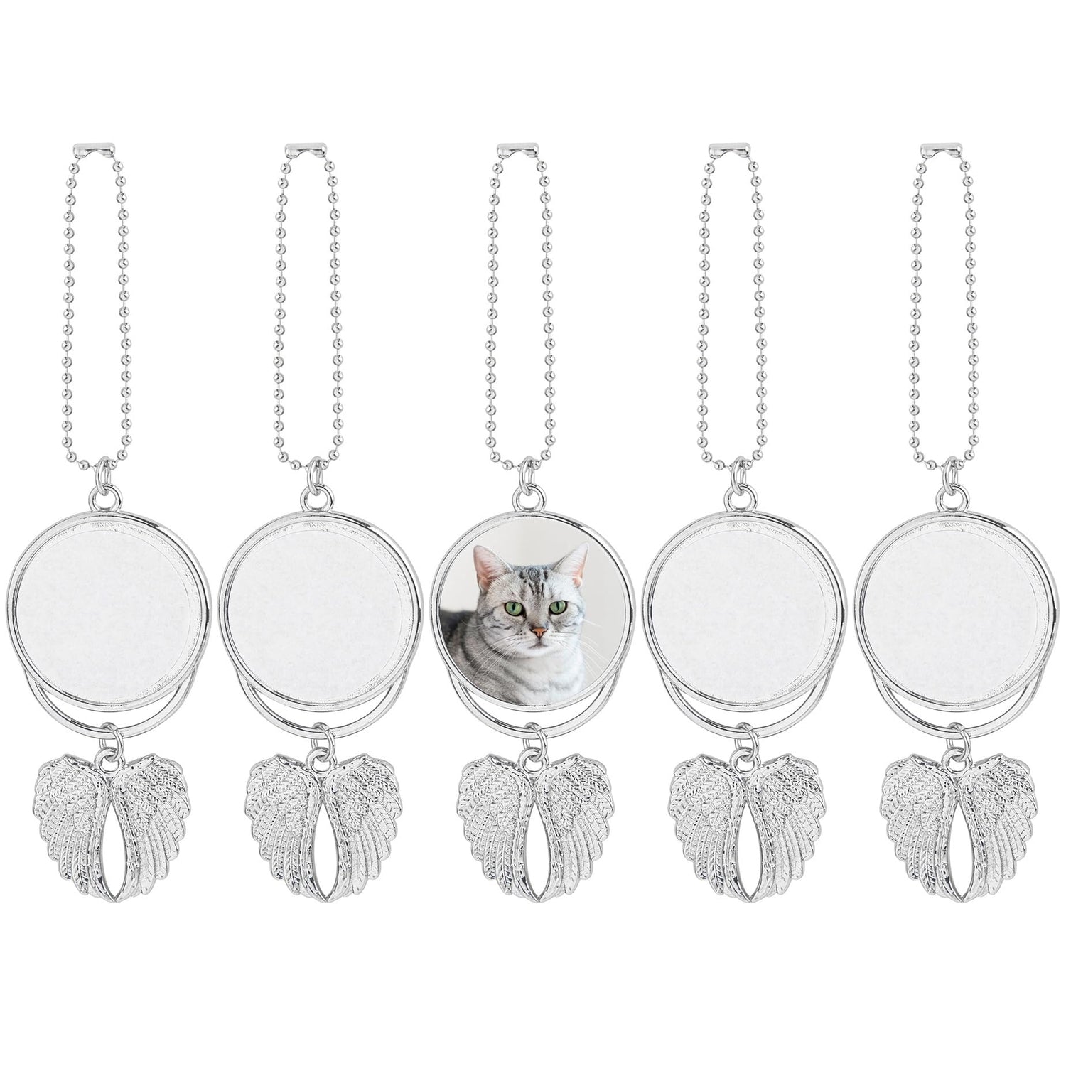 Framendino, 5 Pack Silver Angel Wings Car Hanging Ornament Personalized Car Mirror Hanging Accessories Blank Heat Transfer Photo Frame Keychain for DIY Crafting