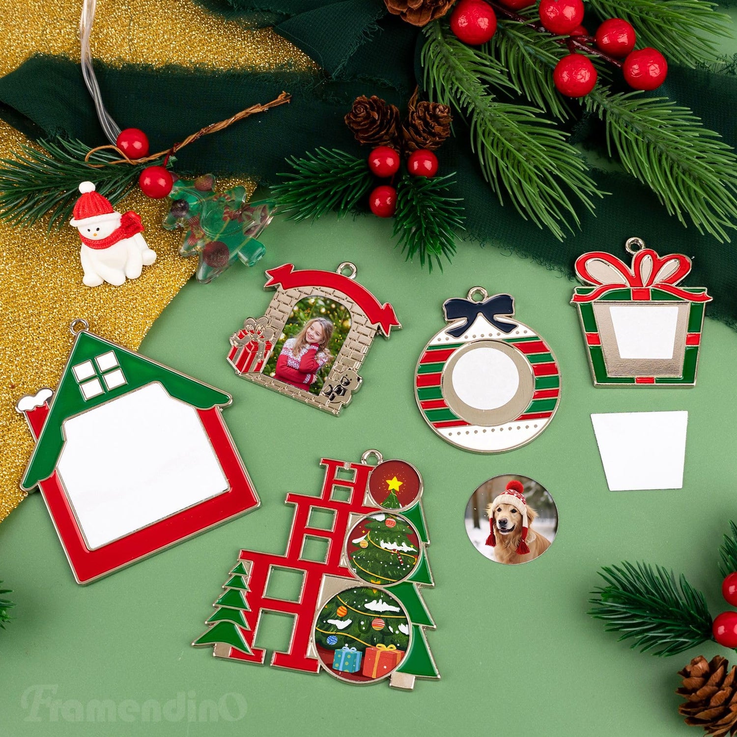 Framendino, 5 Pack Sublimation Hanging Ornament Christmas Metal Ornament Decoration Photo Frame Ornament for Car Christmas Tree Decor