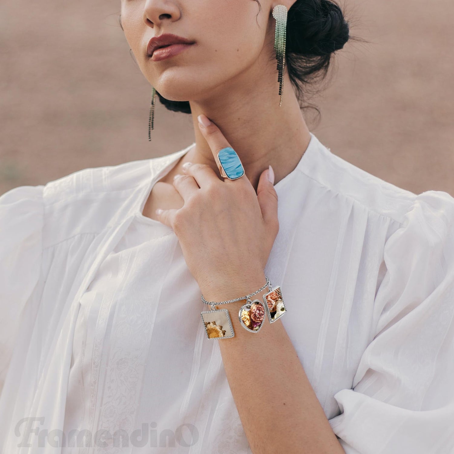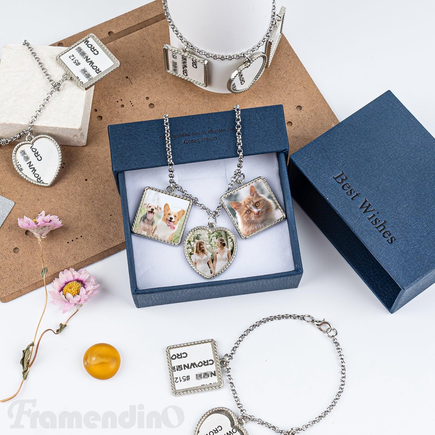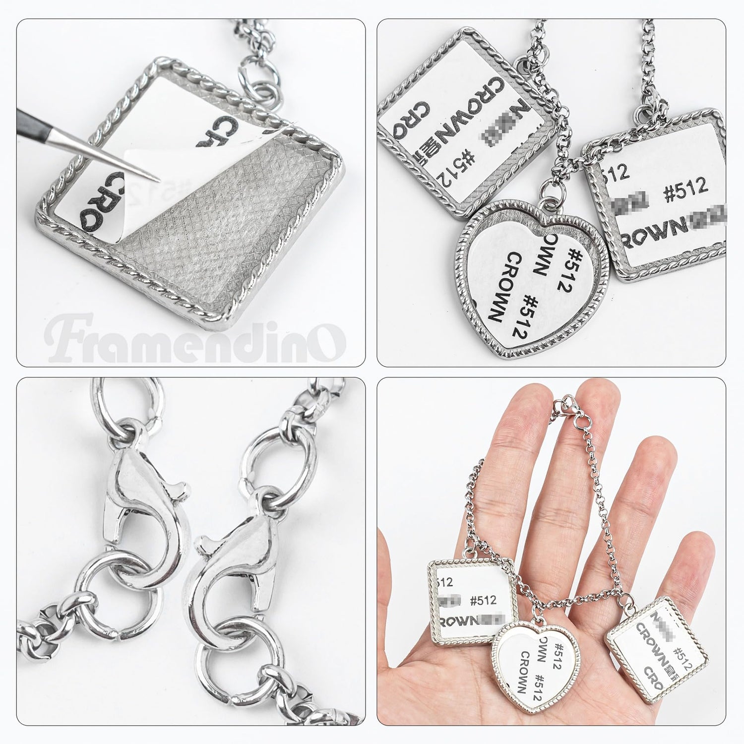 Framendino, 5 Set Sublimation Bracelets Blanks Heat Transfer Bracelet Adjustable Heart Square Photo Bezel Tray Craft Setting for Women