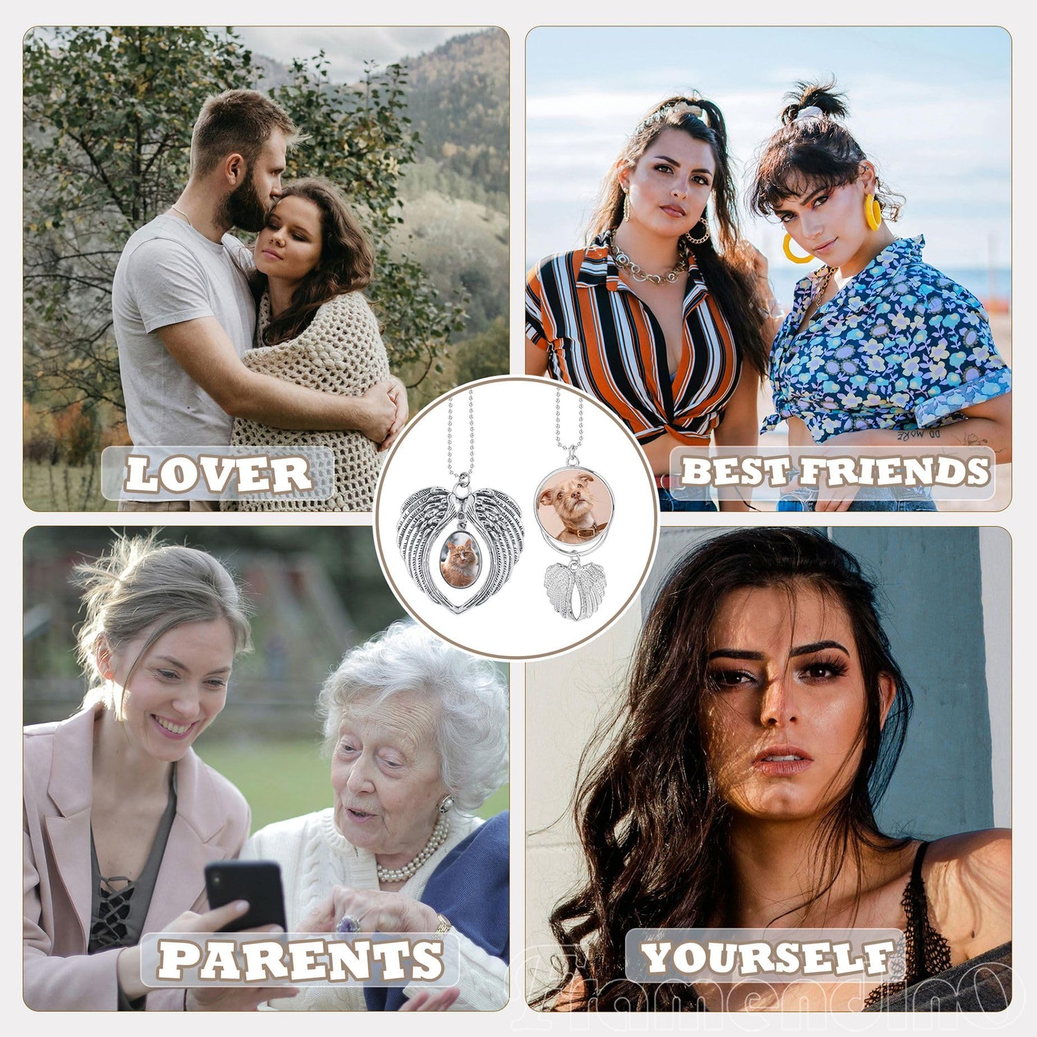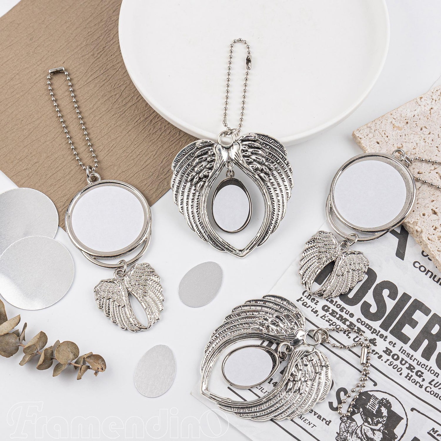 Framendino, 6 Pack Silver Angel Wing Pendant Personalized Car Hanging Ornament with Sublimation Blank Heat Transfer Photo for Home Window