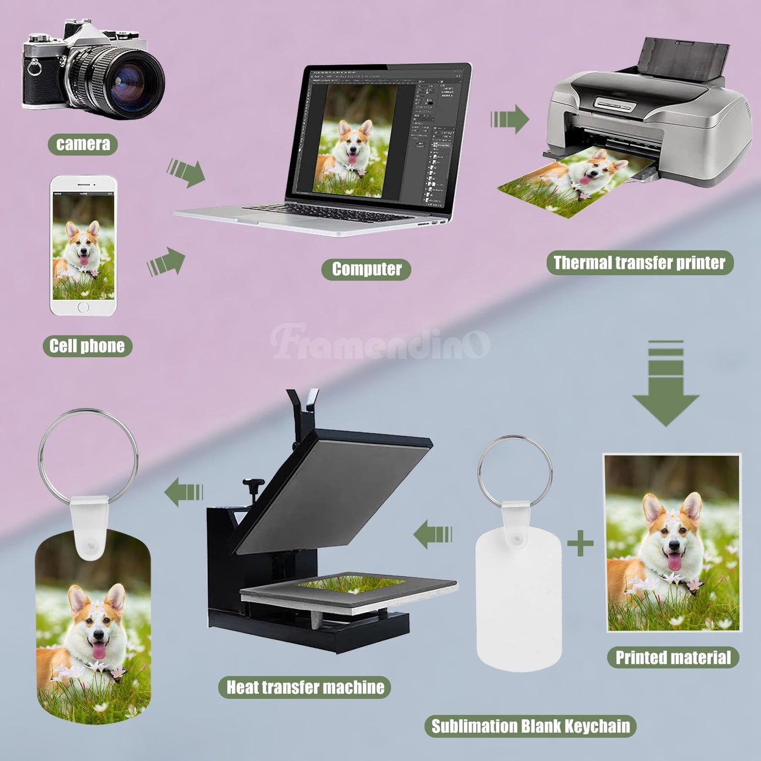 Framendino, 60 Pack Metal Sublimation Keychain Blanks Double Sided Heat Transfer Keychains Oval