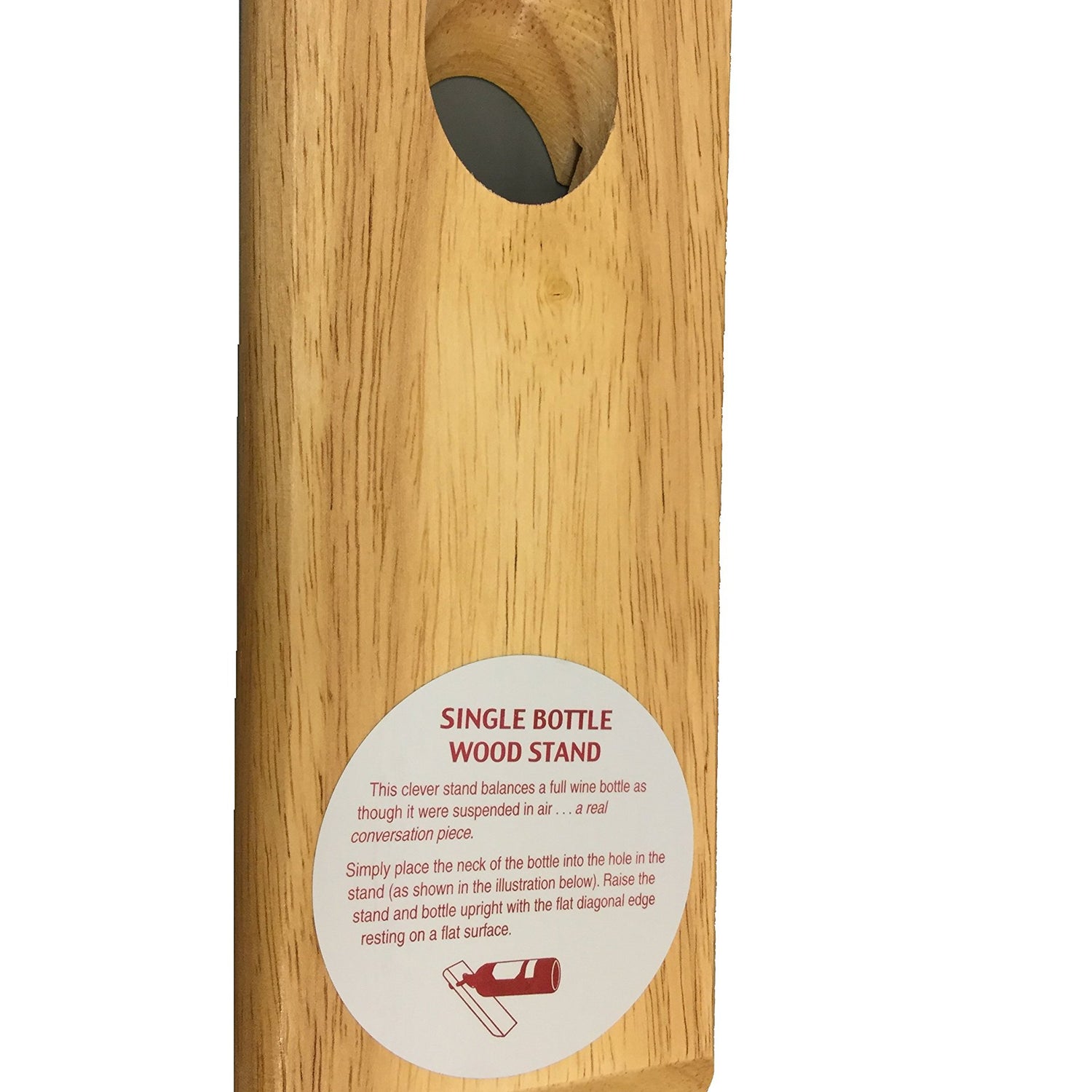 Details: Offer a unique wine presentation with this Franmara wood wine bottle stand! This wine bottle stand perfectly balances at an angle when a single wine bottle is directly inserted into the hole cut-out that is the ideal size for a bottle neck to fit into. The stand's center of gravity shifts to counter the weight of the bottle, allowing for this intriguing presentation to take place. The design of this wine bottle stand is modern and stylish, with a minimalistic appeal. With a durable and attractive light wood construction, this wine bottle stand is sure to last in your establishment for multiple uses to come. This wine bottle stand allows for a simple way to elevate your wine presentation and offers an alternative to wine buckets. This item is perfect for wineries, restaurants, and catering events.