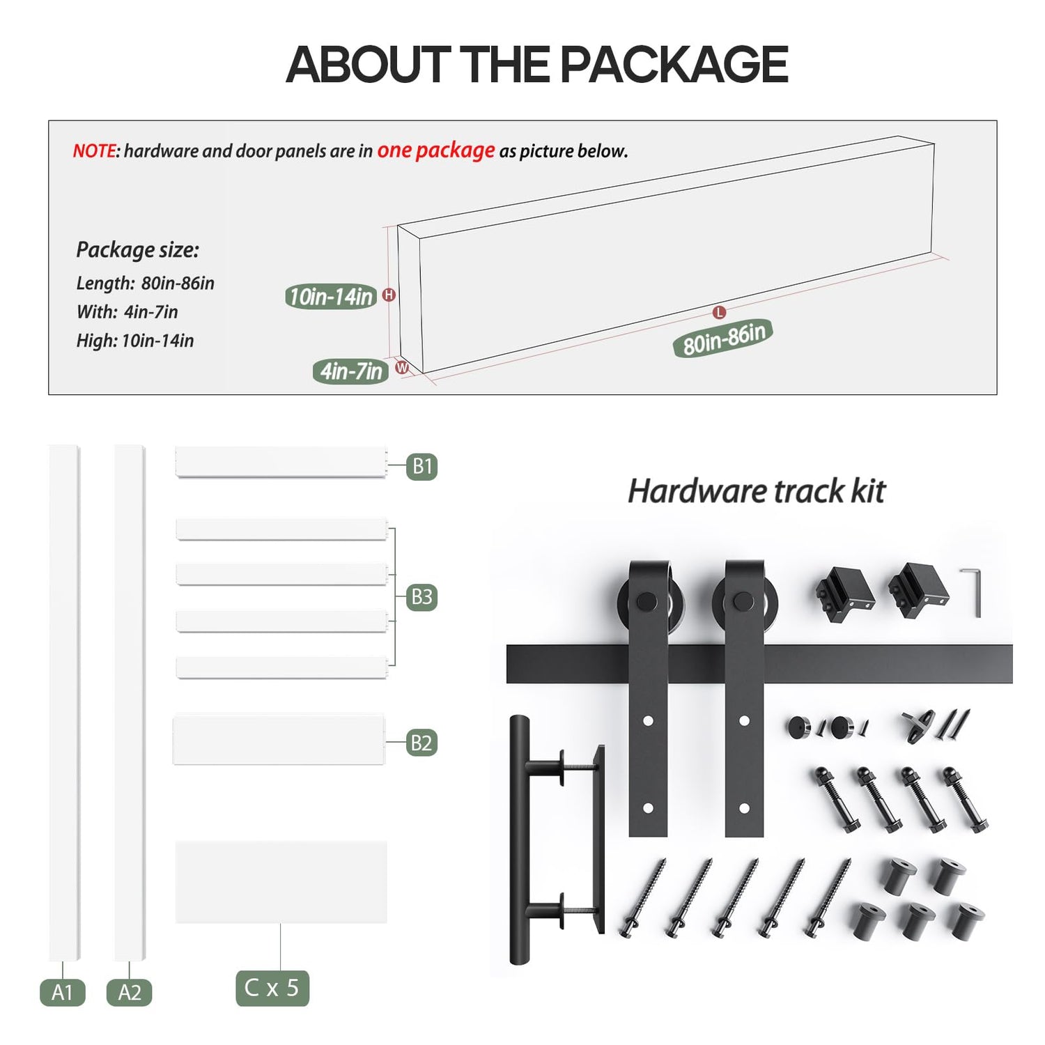 - ๐๐๐๐ค๐๐ ๐ ๐๐ง๐๐ฅ๐ฎ๐๐ : 1 x Door: Width: 30", Height: 84"; 1 x Hardware Kit
