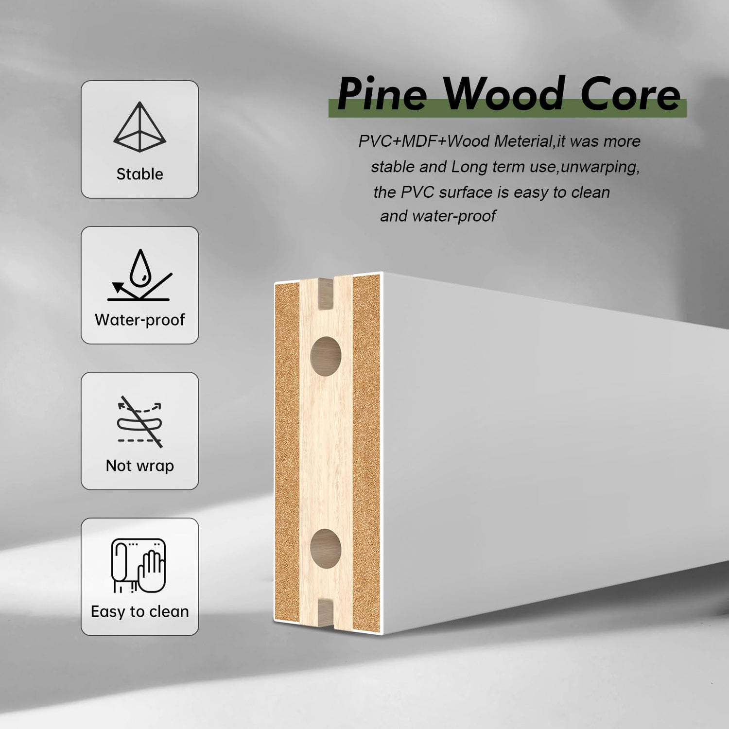 - ๐๐๐ญ๐๐ซ-๐๐ซ๐จ๐จ๐ & ๐๐๐ซ๐๐ญ๐๐ก-๐๐ซ๐จ๐จ๐ : Prefinished PVC water-proof door surface is more durability, longevity, and ease to clean