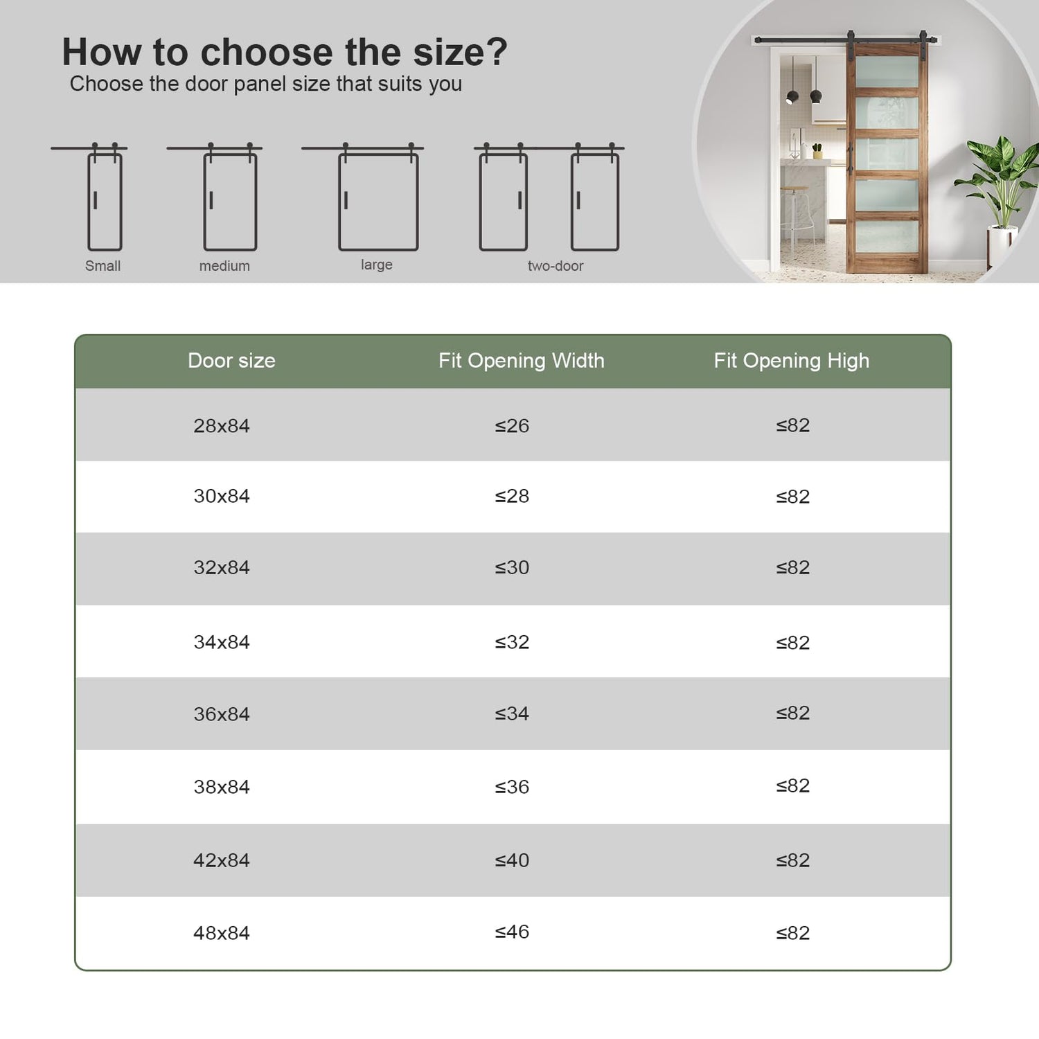 - ๐๐๐๐ค๐๐ ๐ ๐๐ง๐๐ฅ๐ฎ๐๐ : 1 x Door: Width: 36", Height: 84"; 1 x Hardware Kit: (1)6.6ft Track,(2)Hanger,(5)Spacer,(2)Door Stop,(1)Floor Guide,(1)Handle.๏ผThe header board not included๏ผ