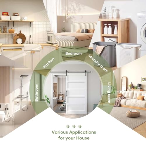 Fredbeck 42x84 inch White Barn Door with 7FT Sliding Door Hardware Kit Included & Handle,MDF,Solid PVC Surface,DIY Assembly,5-Panel