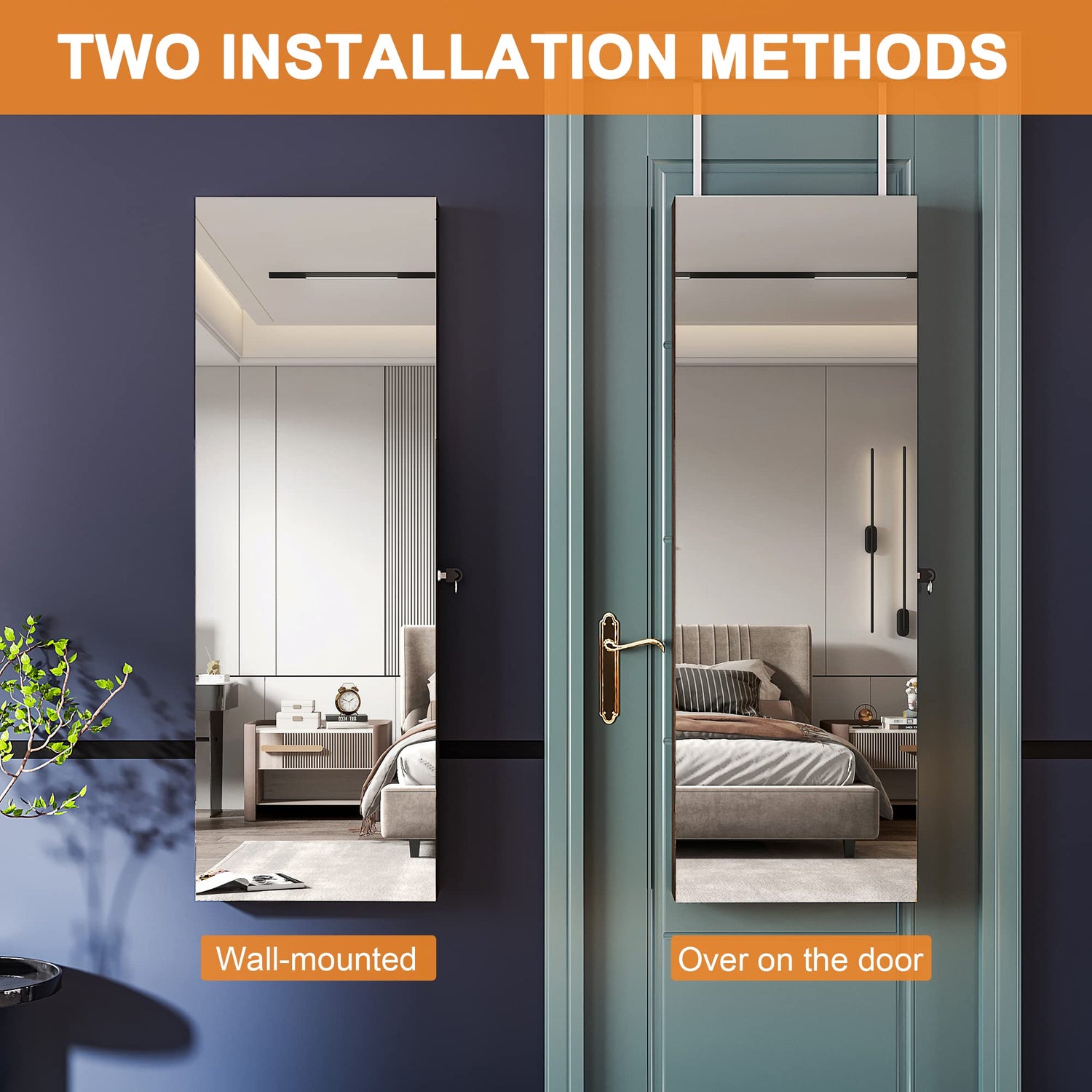 - WALL MOUNTING / DOOR MOUNTING - The jewelry armoire is height adjustable when hung on the hooks on the door, or you can mount it on a blank wall with the included screws to save even more space. Add beauty and maximize your room with this simple and flexible jewelry armoire