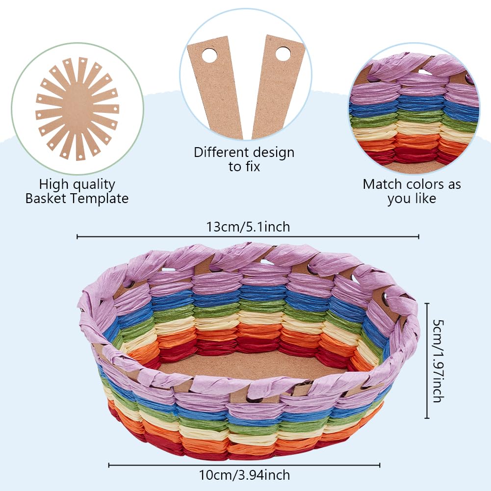 - Basket Weaving Kit: Package includes 5 different shapes of woven basket corrugated cardboards*15pcs, 6 colors of Raffia ribbon(20m/65.6ft per color). Enough to make 15 baskets in total.