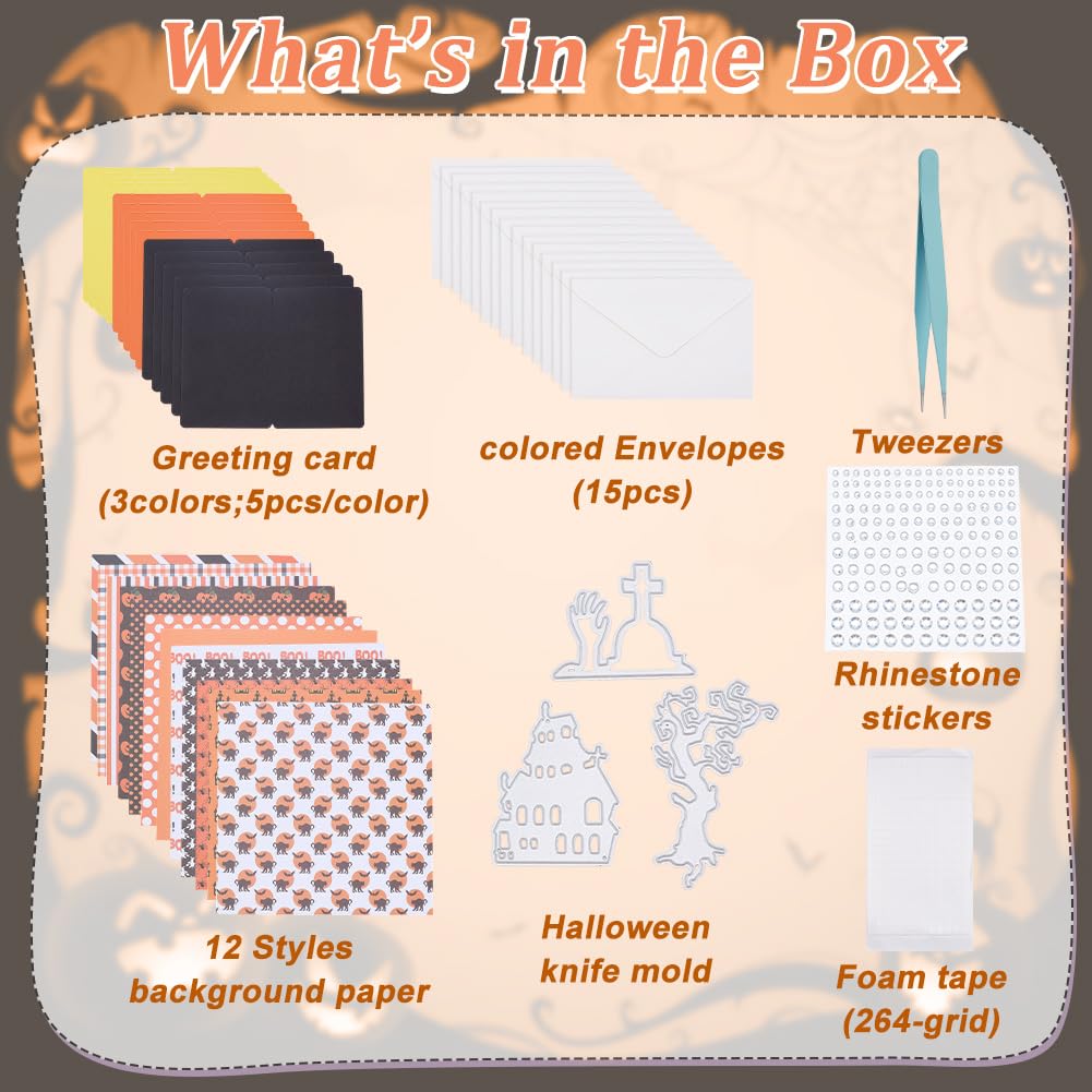FREEBLOSS 15 Set DIY Card Making Kit for Adults Halloween Card Making Kits Handmade Greeting Card Kit for Birthday Wedding Congratulation Halloween Party Favors Scrapbooking Supplies