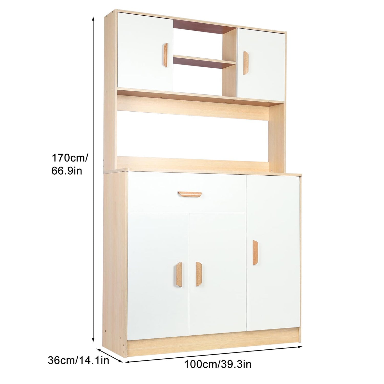 - 🎃[ 2-person Installation for Easily Assemble ] - Kitchen pantry cabinet dimensions: 39.37"L x 14.17 "W x 66.9 "H. Considering the height of the high storage cabinet and the actual installation process, 2 people to install it together will be better.